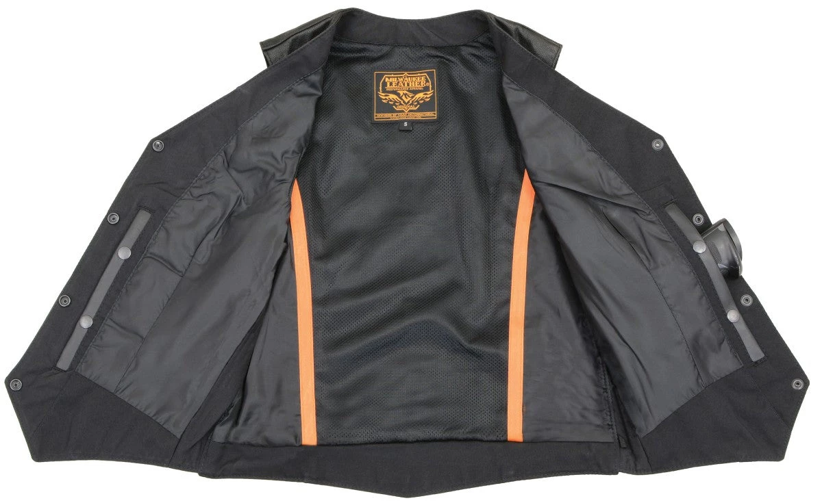 Milwaukee Leather MLL4545 Ladies Black Lightweight Classic Four Snap Leather Vest