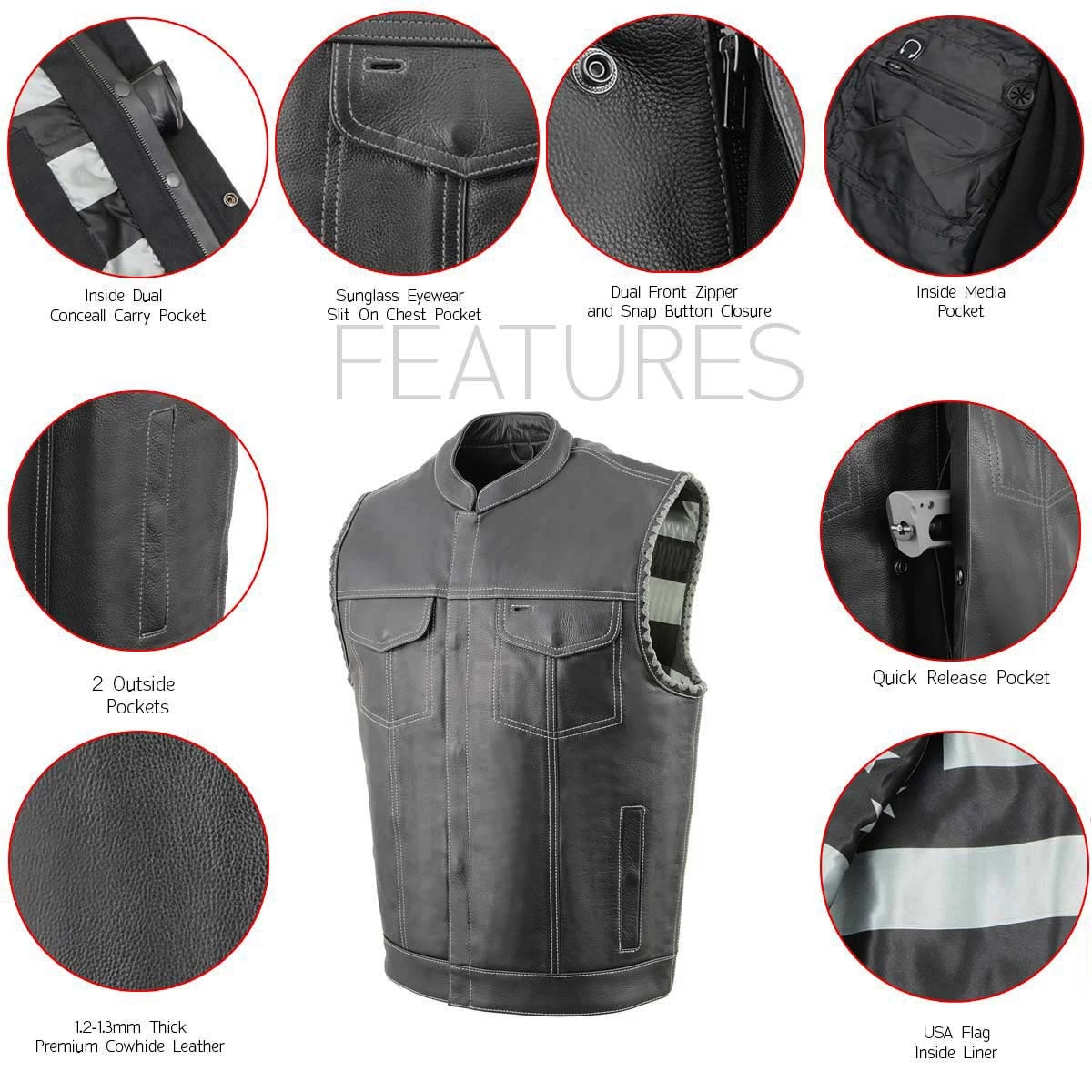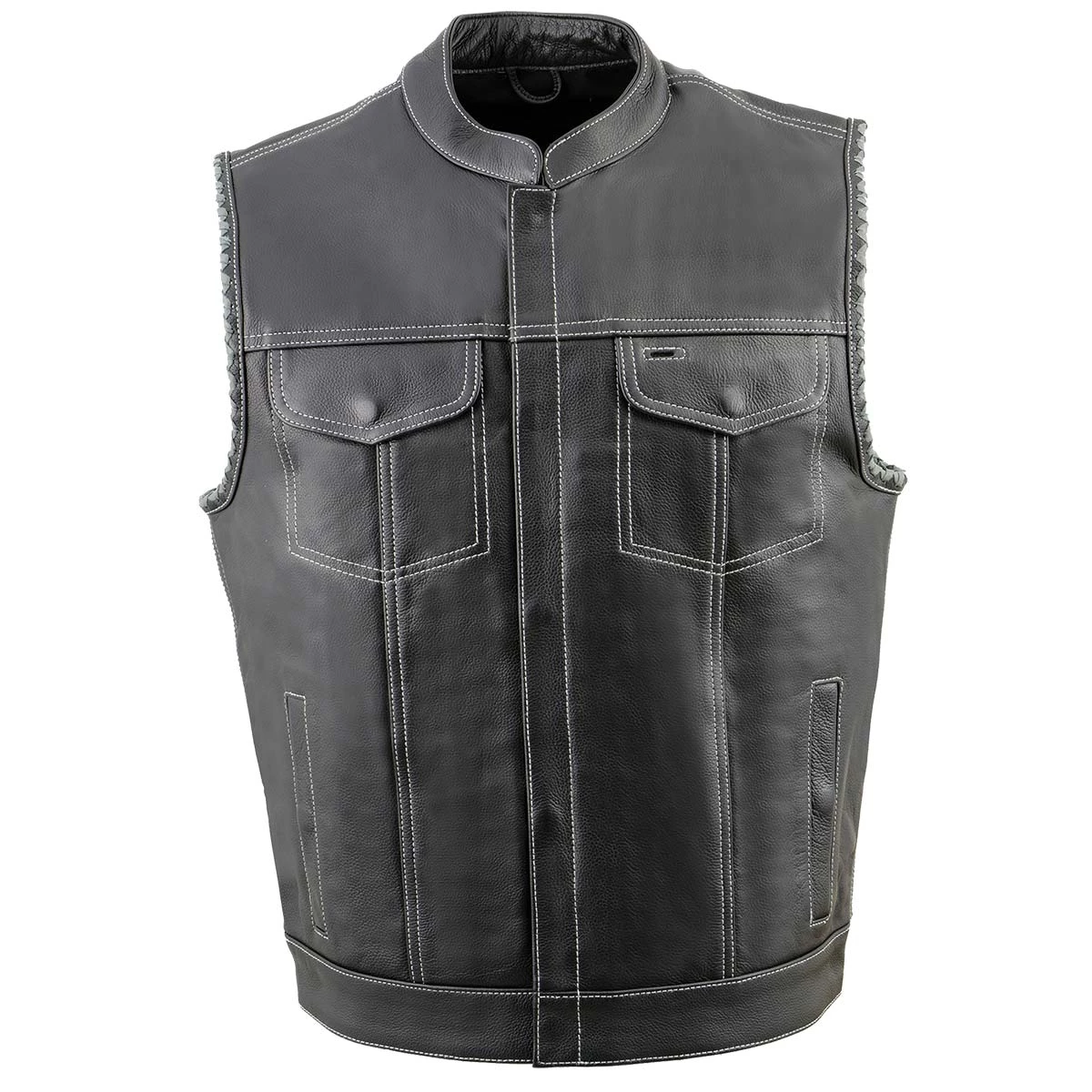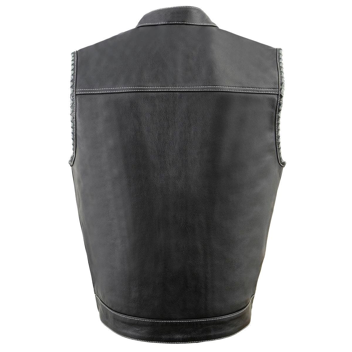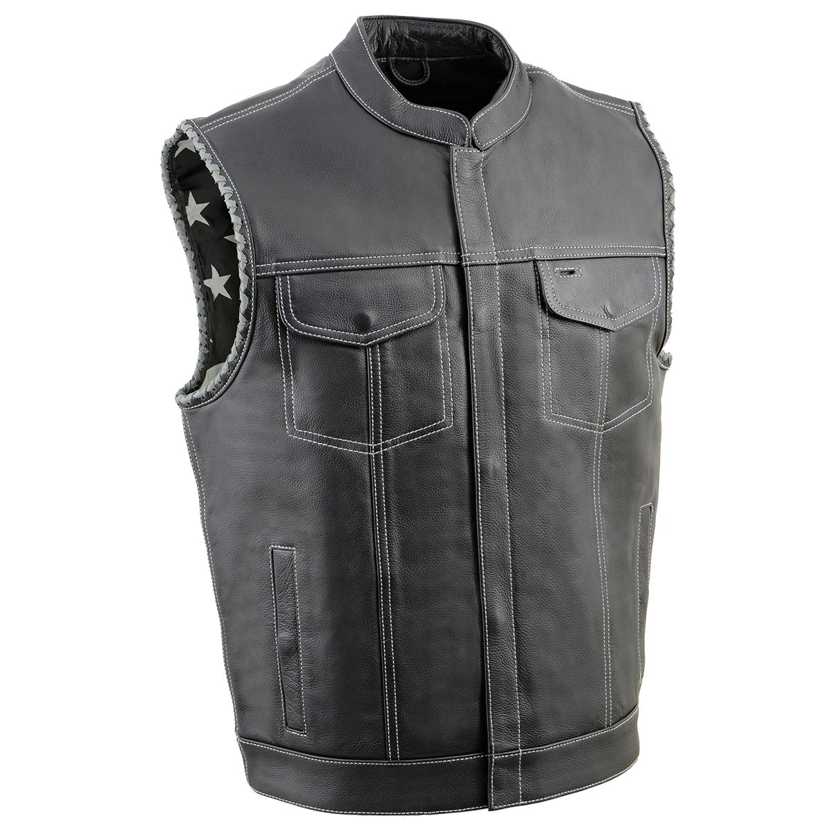 Milwaukee Leather MLM3507 Men’s ‘Old Glory’ Black Leather with Grey Stitching Vest and Laced Arm Holes