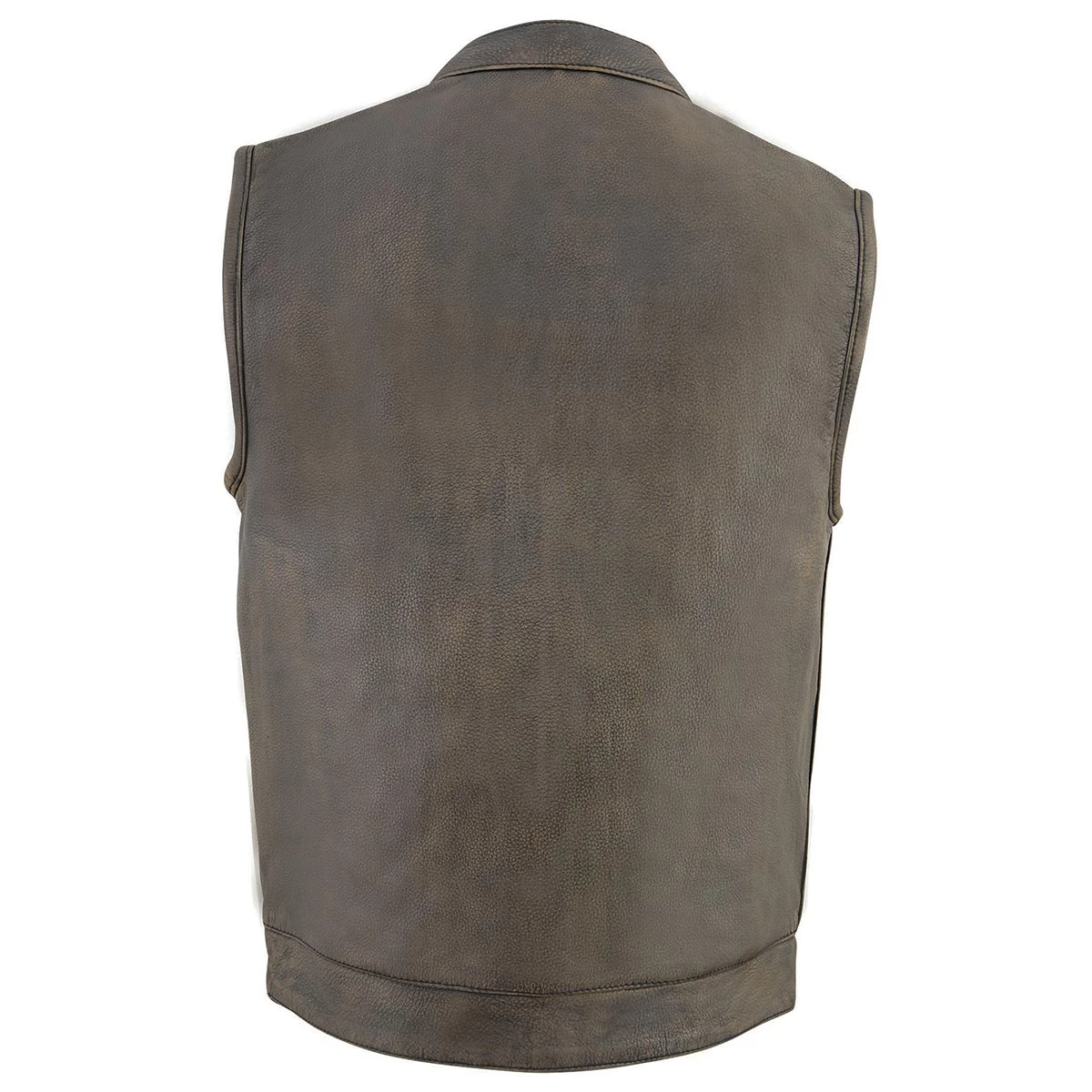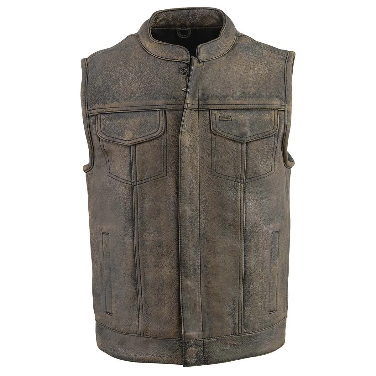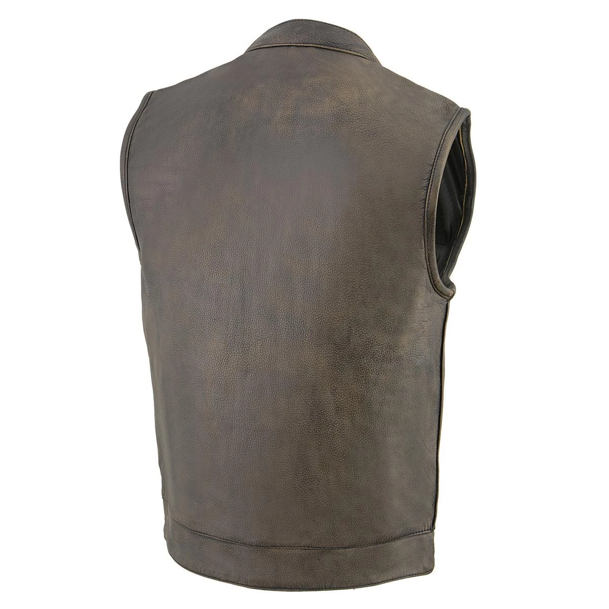Milwaukee Leather MLM3510 Men’s Distressed Brown ‘Dual Closure’ Open Neck Club Leather Vest