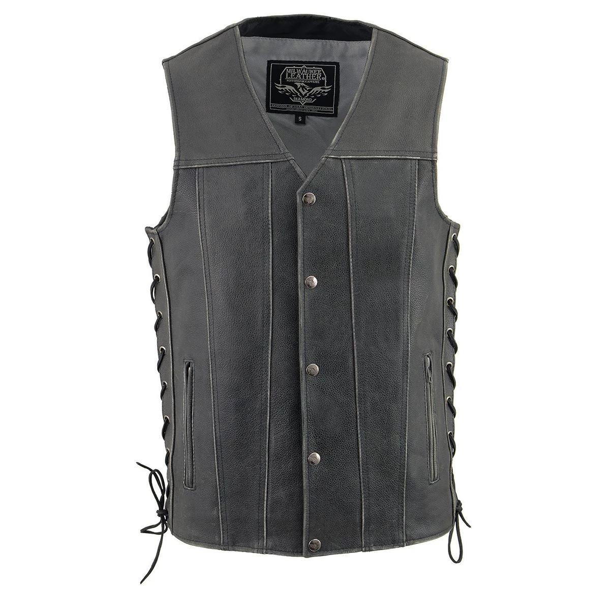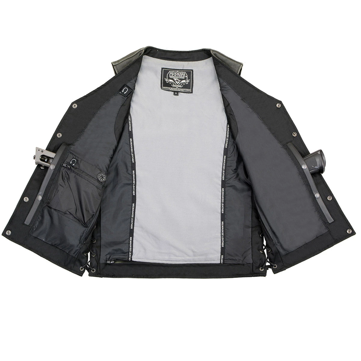 Milwaukee Leather Men’s Straight Bottom Side Lace Distressed Gray Leather Vest with Gun Pocket
