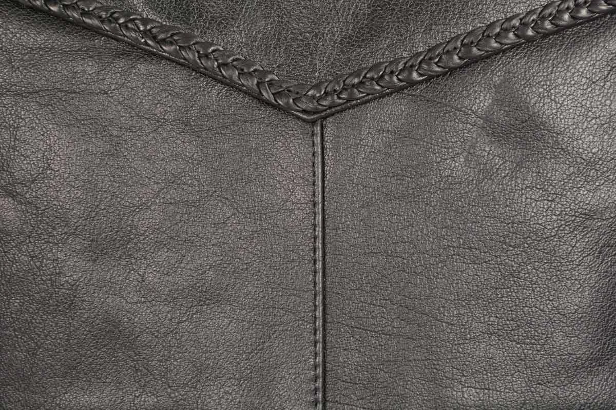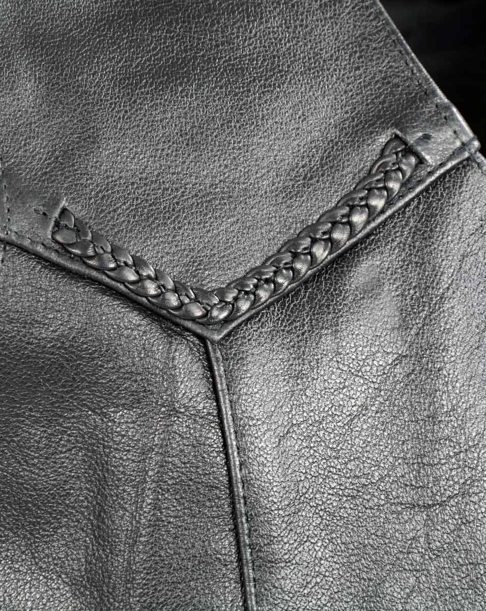 - Front and Back Leather Braided Trim Detail