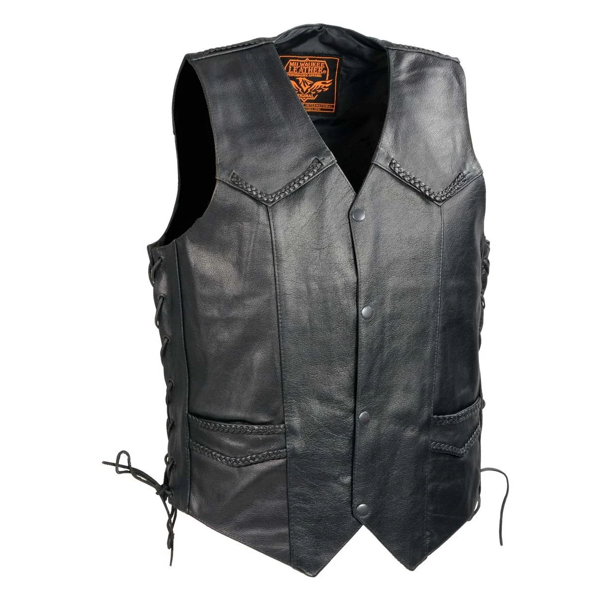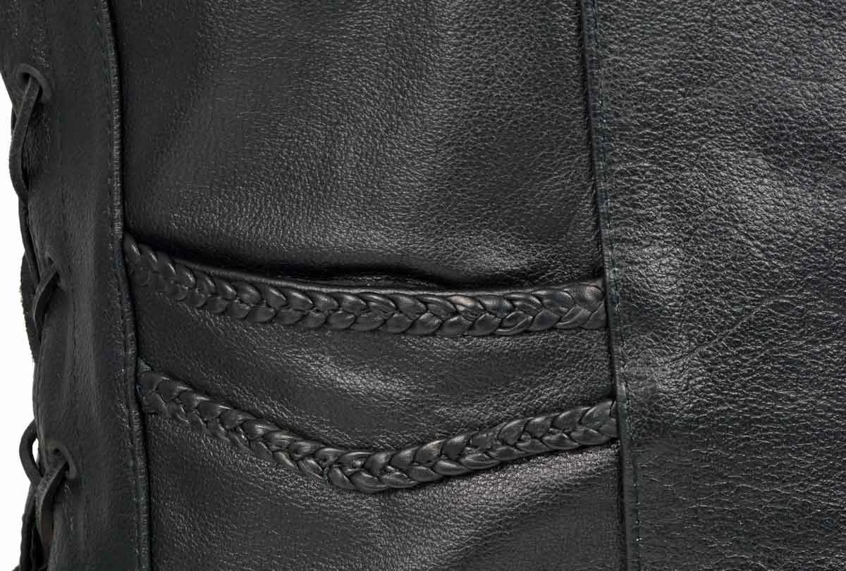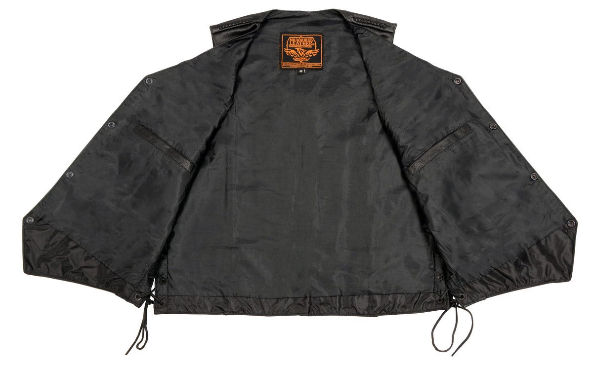 Milwaukee Leather SH1314 Men’s Classic Black Braided Leather Vest with Side Laces