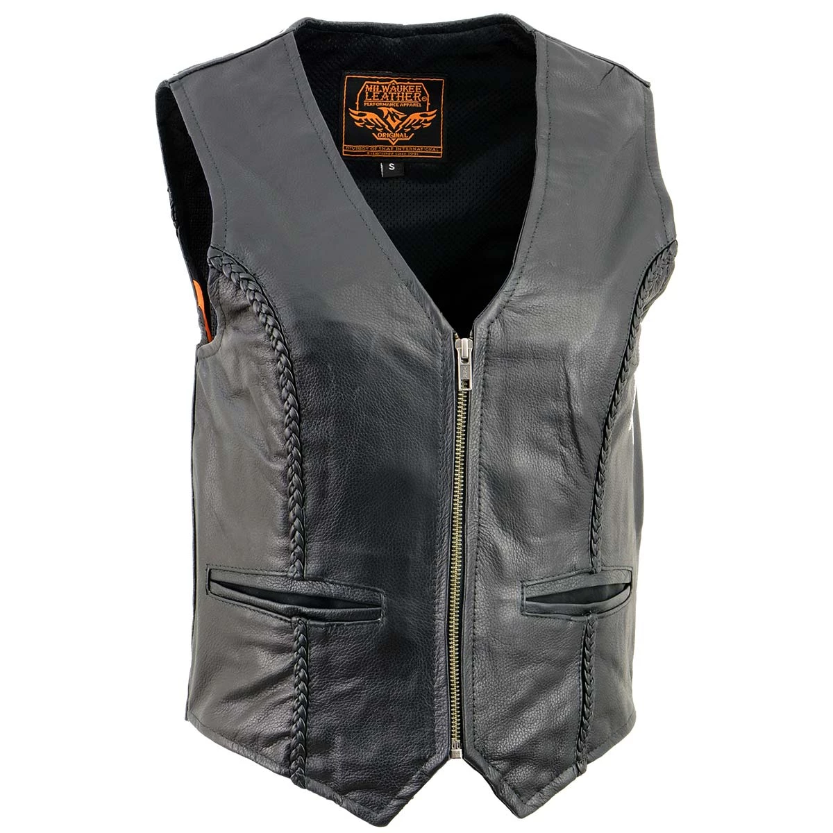 Milwaukee Leather XS1246 Ladies Black ‘Braided’ Classic Leather Vest