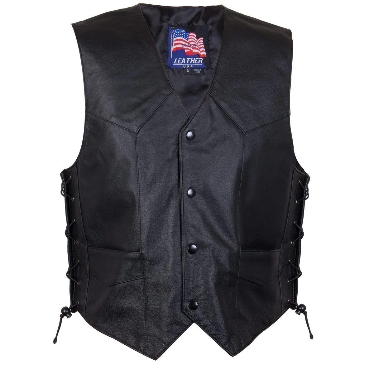 USA Leather Classic Style 201L Men’s Side Lace Leather Vest