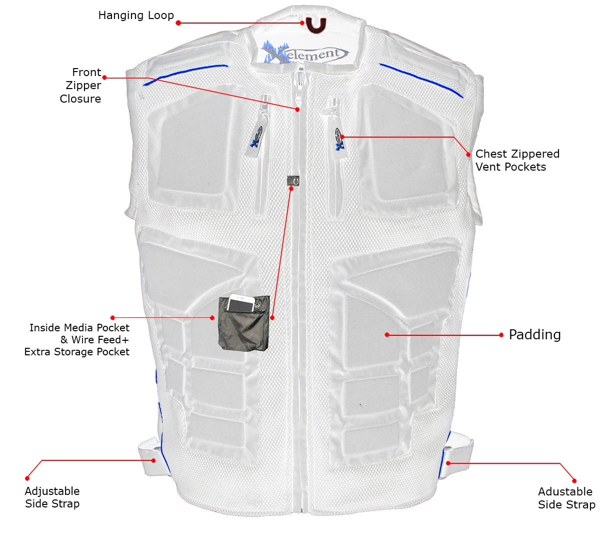 Xelement CF244 Men’s ‘Delta’ Black Padded Tri-Tex Fabric and Mesh Vest