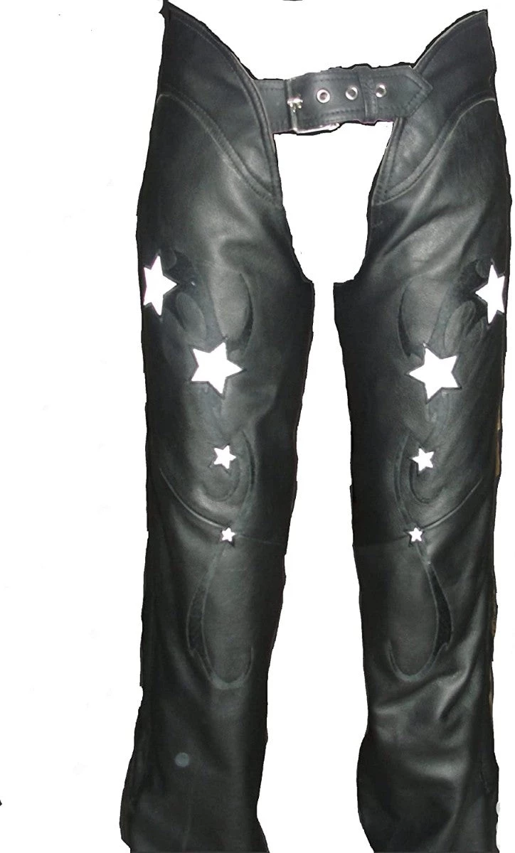 First Manufacturing FIL755CSL Women’s Black Reflective Star Leather Chap