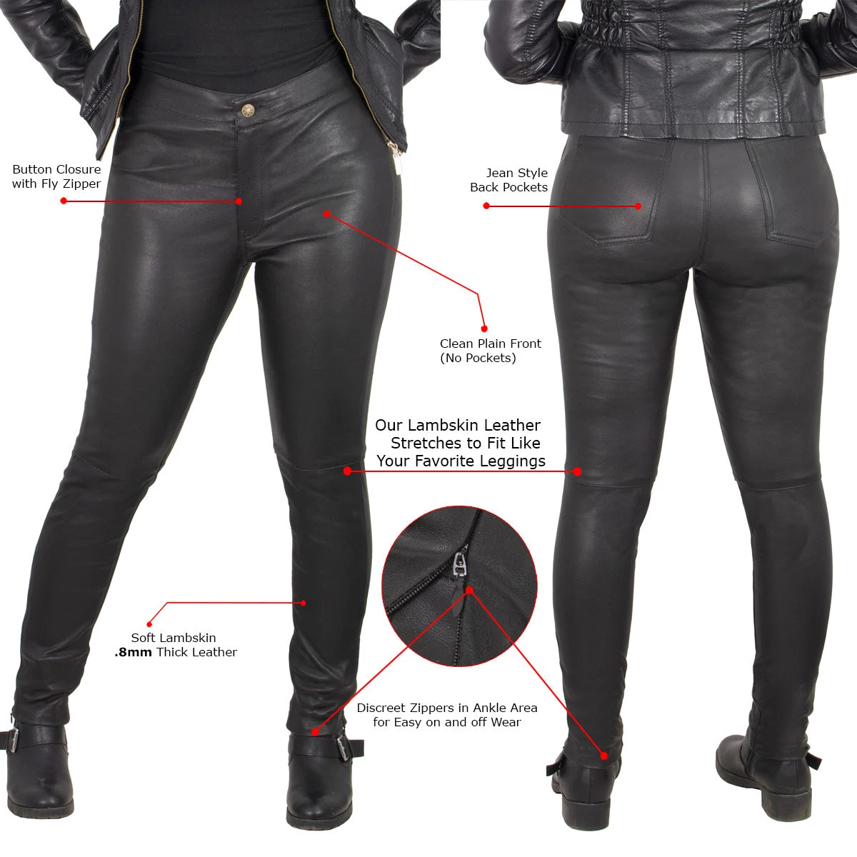 Milwaukee Leather MLL6690 ‘Sandy’ Women’s Black Lambskin Stretch Leather Pants