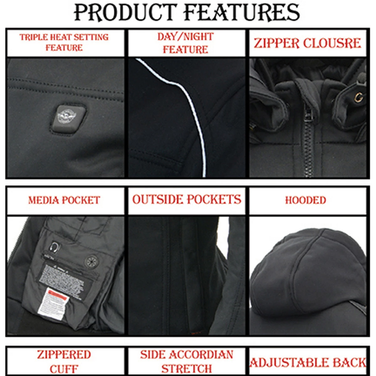 NexGen Heat NXM1761SET Men’s ‘Igniter’ Black ‘Heated’ Soft Shell Hooded Jacket (Rechargeable Battery Pack Included)