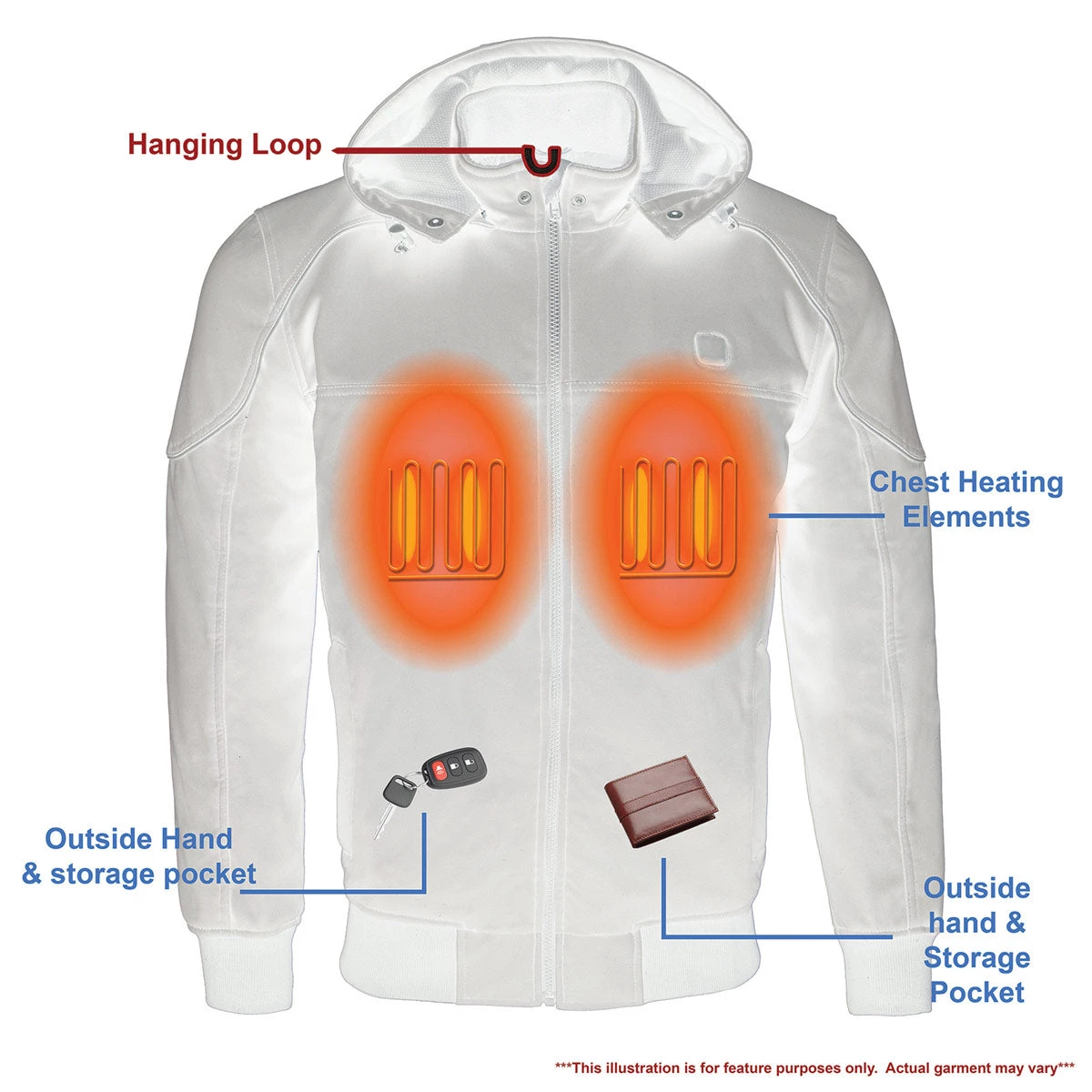 - 2 Lower Outside Hand Pockets with Zipper Closure