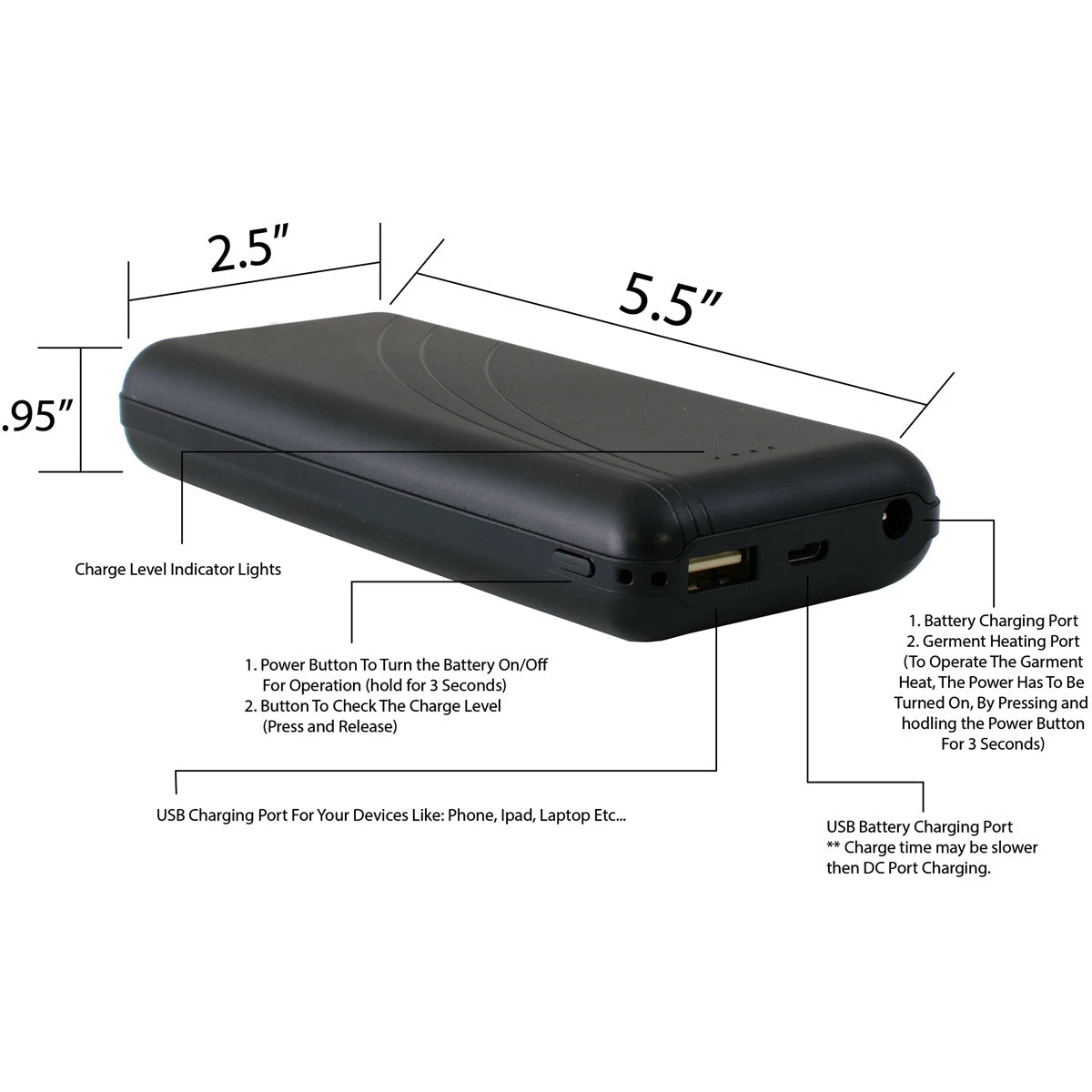 - Inside Built in Waterproof Pocket Holds Portable Battery Pack