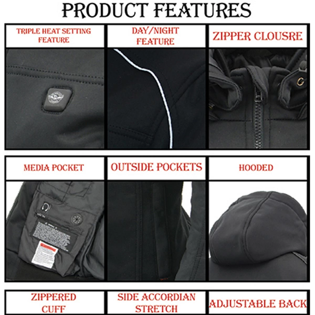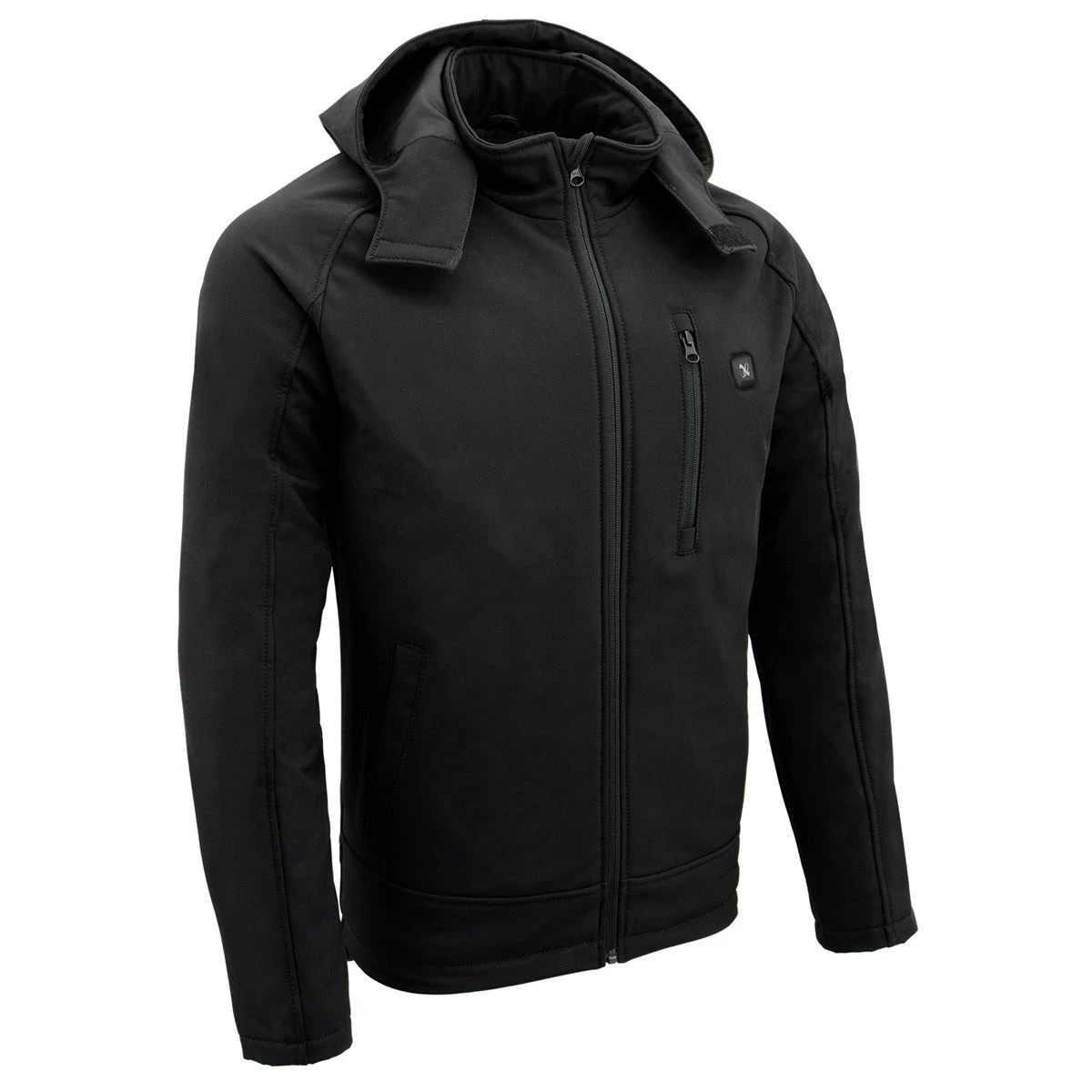 NexGen Heat NXM1767SET Men’s ‘Ruffled’ Black ‘Heated’ Soft-Shell Hooded Jacket (Rechargeable Battery Pack Included)