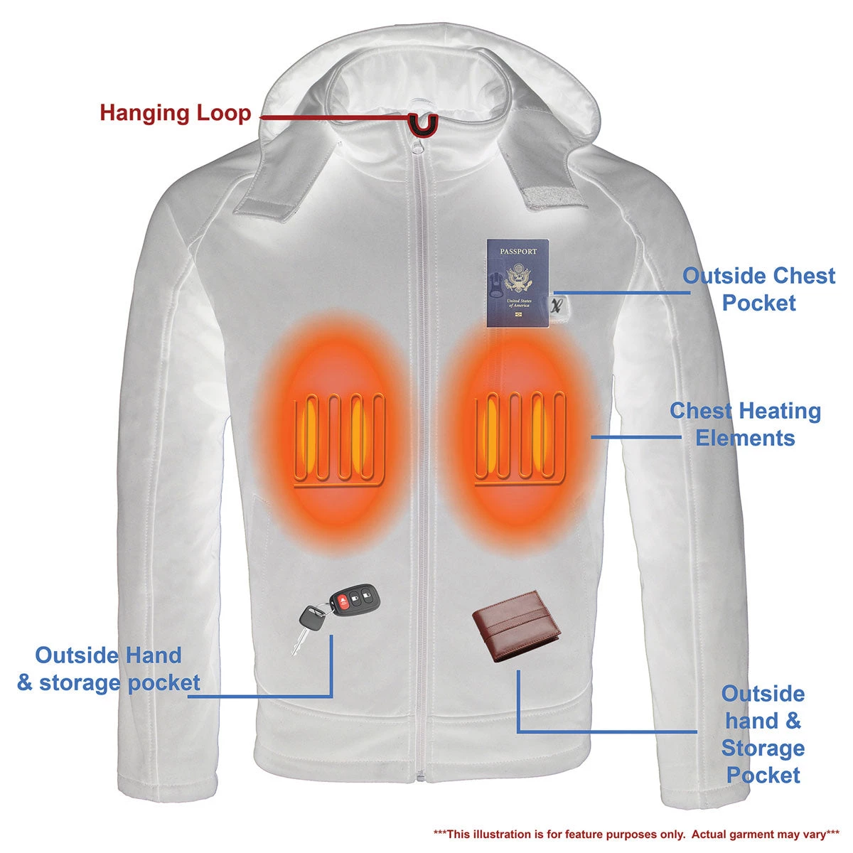 - 2 Lower Outside Hand Pockets with Zipper Closure