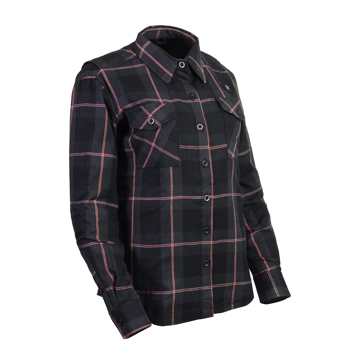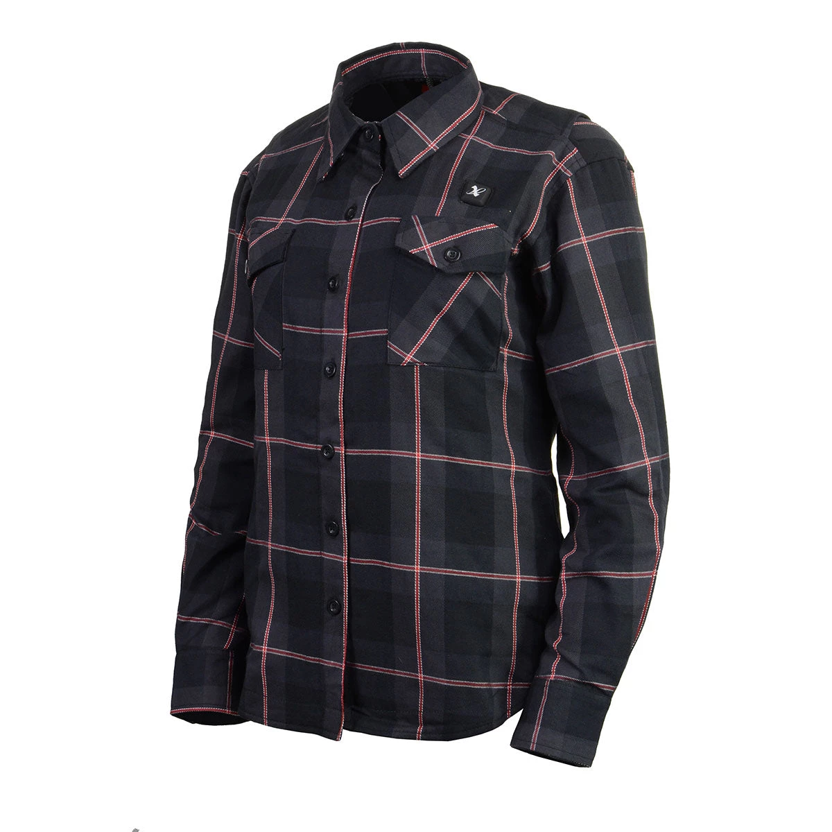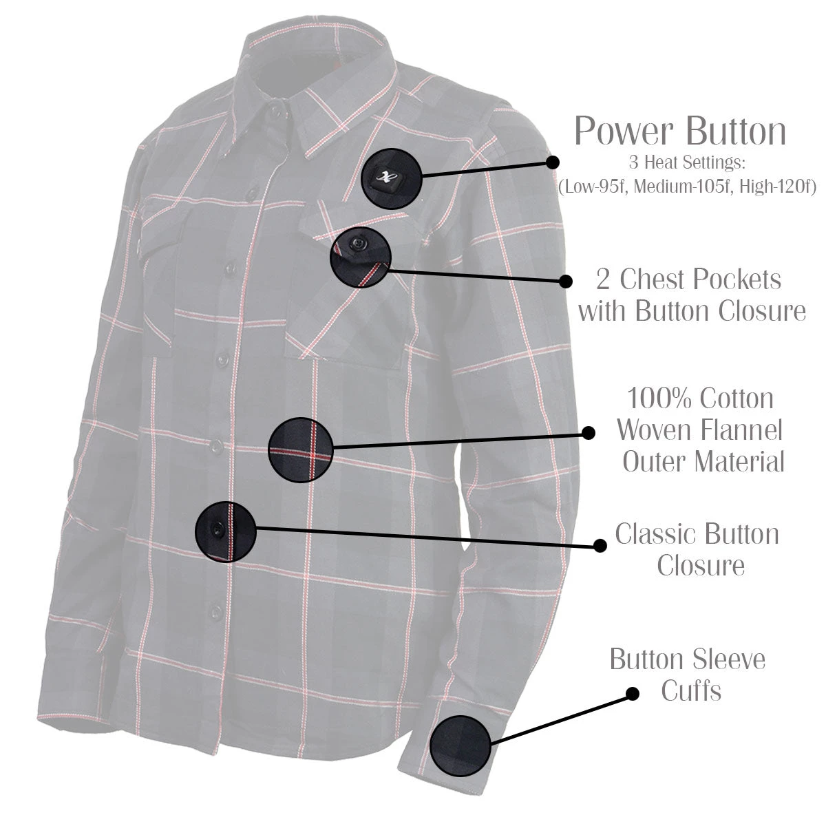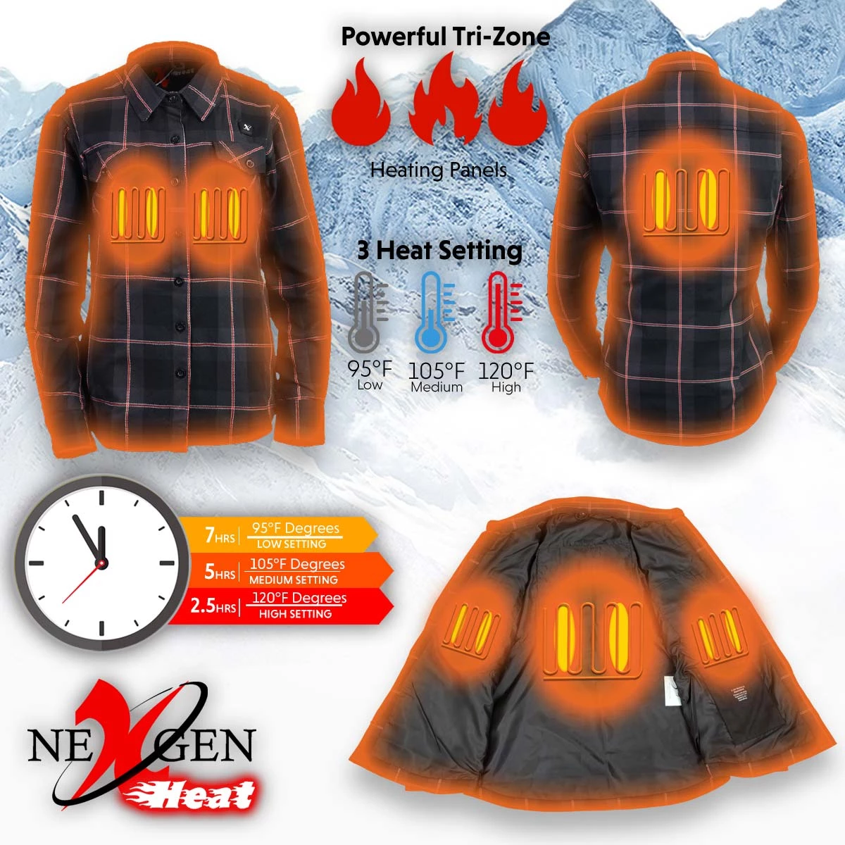 NexGen Heat NXL2602SET Women’s ‘Bonnie’ Black, Grey and Red Heated Flannel Long Sleeve Shirt (Rechargeable Battery Pack Included)