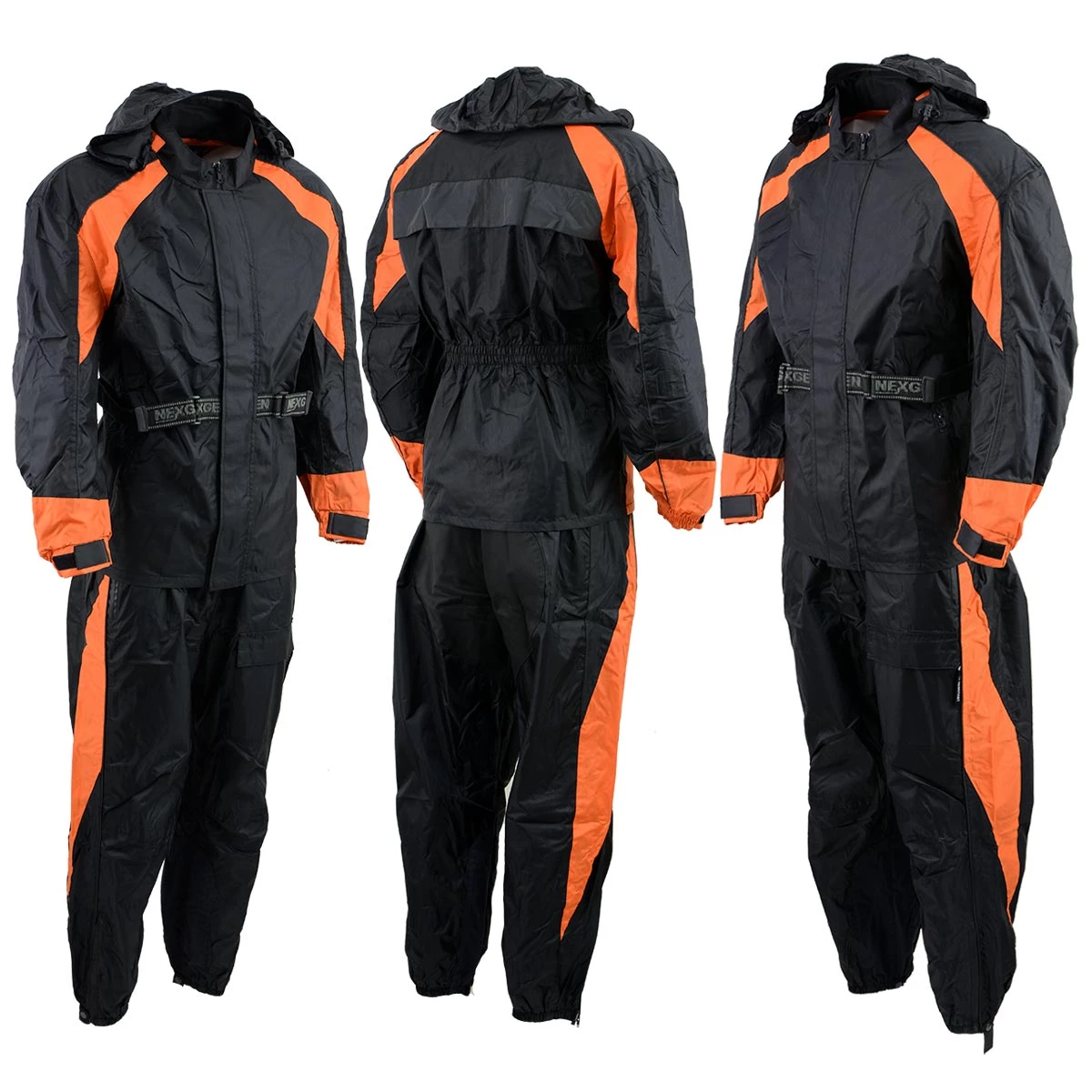 NexGen Men’s SH2052 Black and Orange Armored and Hooded Water Proof Rain Suit