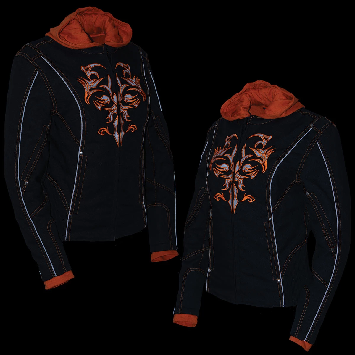 NexGen SH1939 Ladies ‘Reflective Tribal’ Orange and Black 3/4 Length Textile Vented Jacket