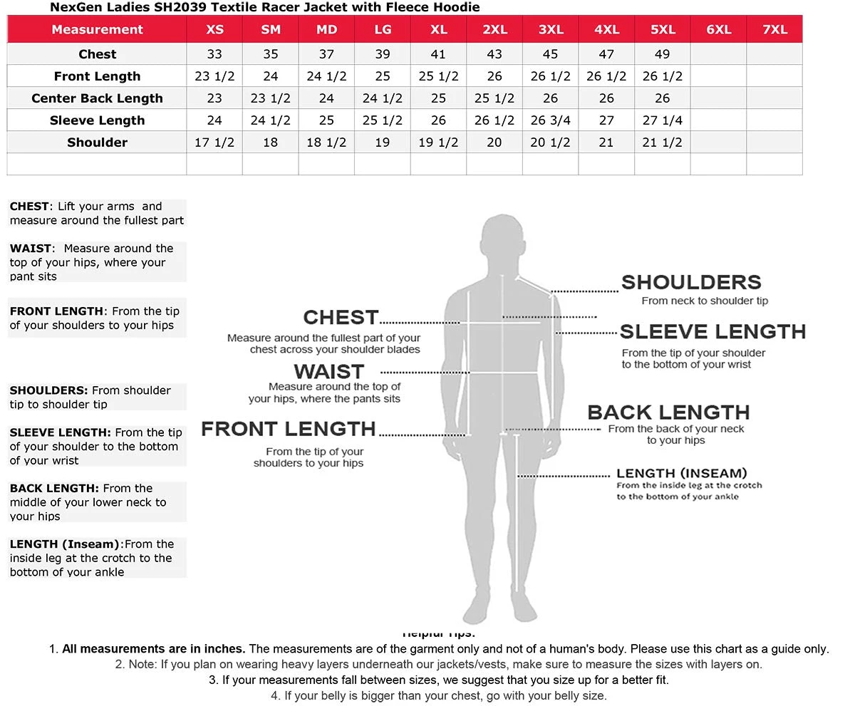NexGen SH2039 Ladies Black and Orange Textile Racer Jacket with Fleece Hoodie