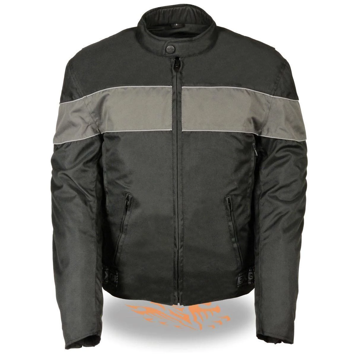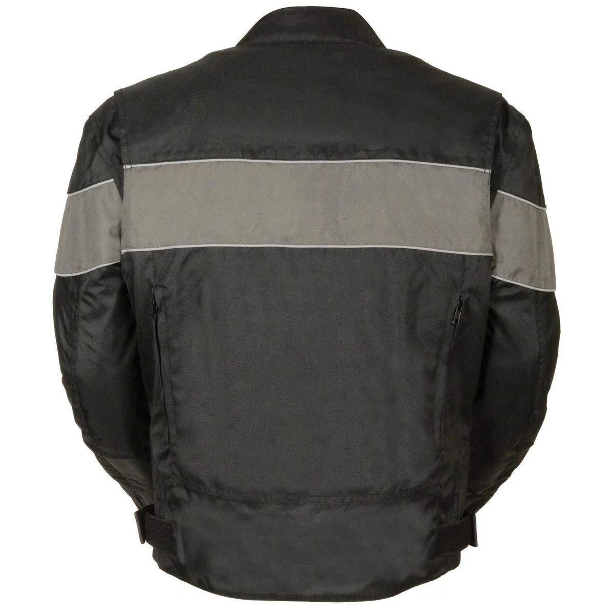 NexGen SH212101 Men’s Black Textile Moto Jacket with Grey Reflective Striping