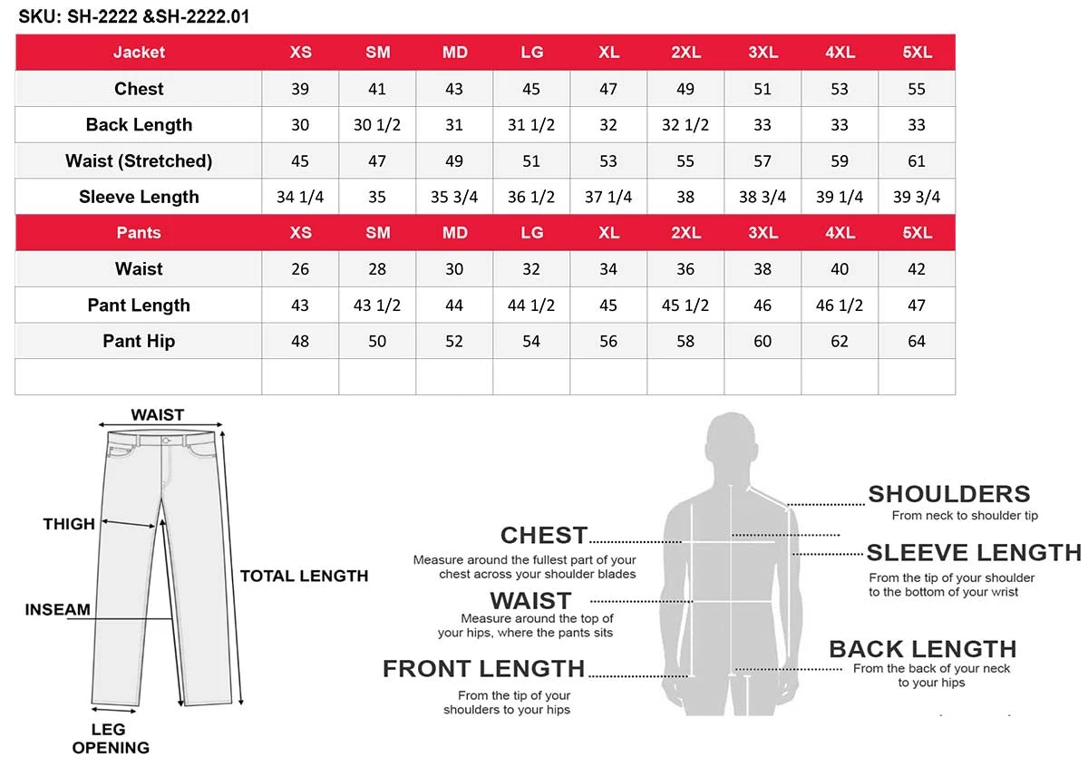 | Sizes | 2X-Small, X-Small, Small, Medium, Large, X-Large, 2X-Large, 3X-Large, 4X-Large, 5X-Large |