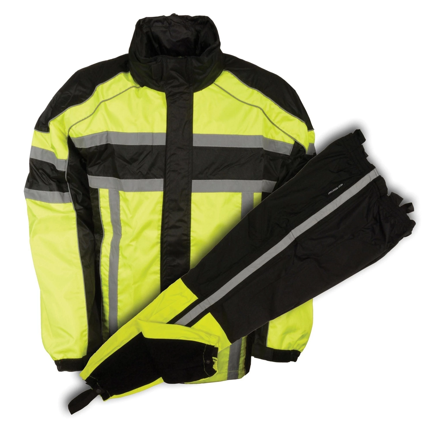 NexGen SH233113 Men’s Black and Neon Green Water-Resistant Rain Suit with Reflective Tape