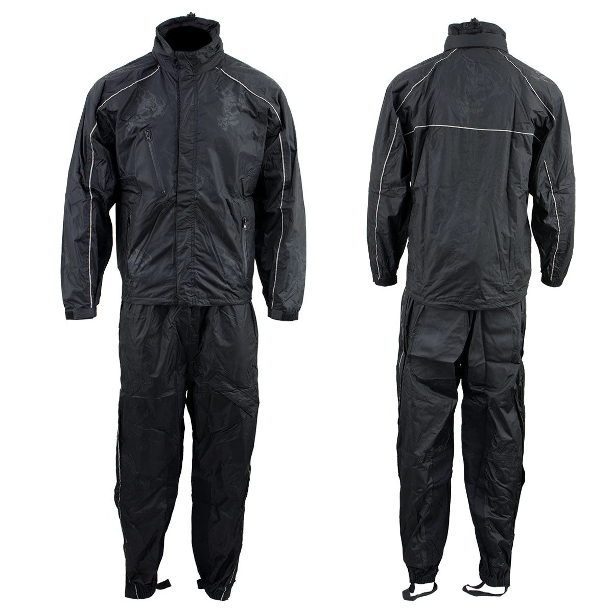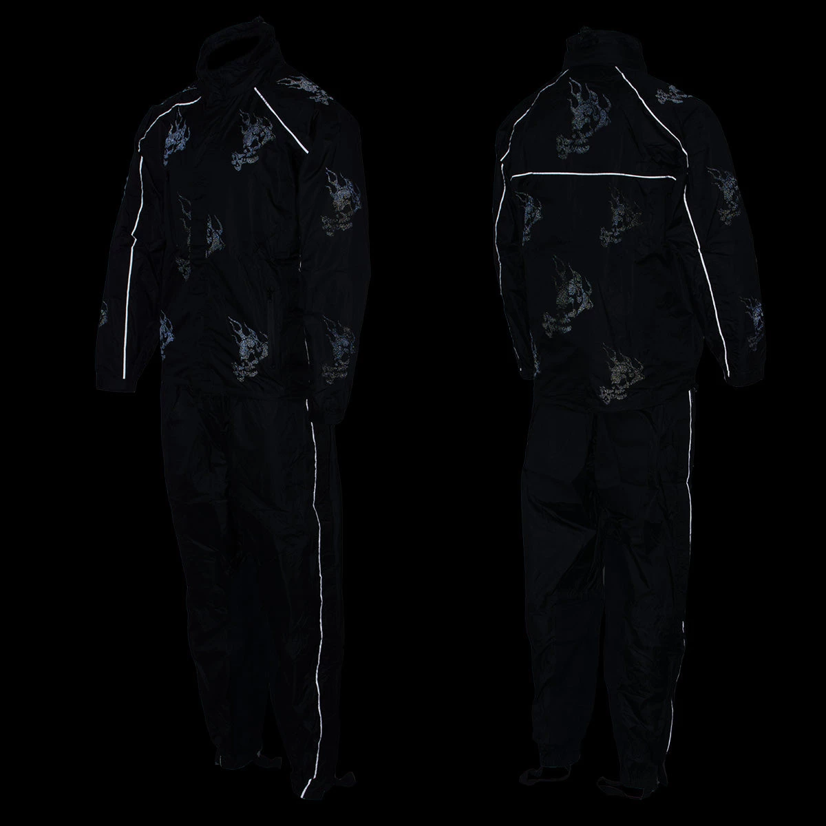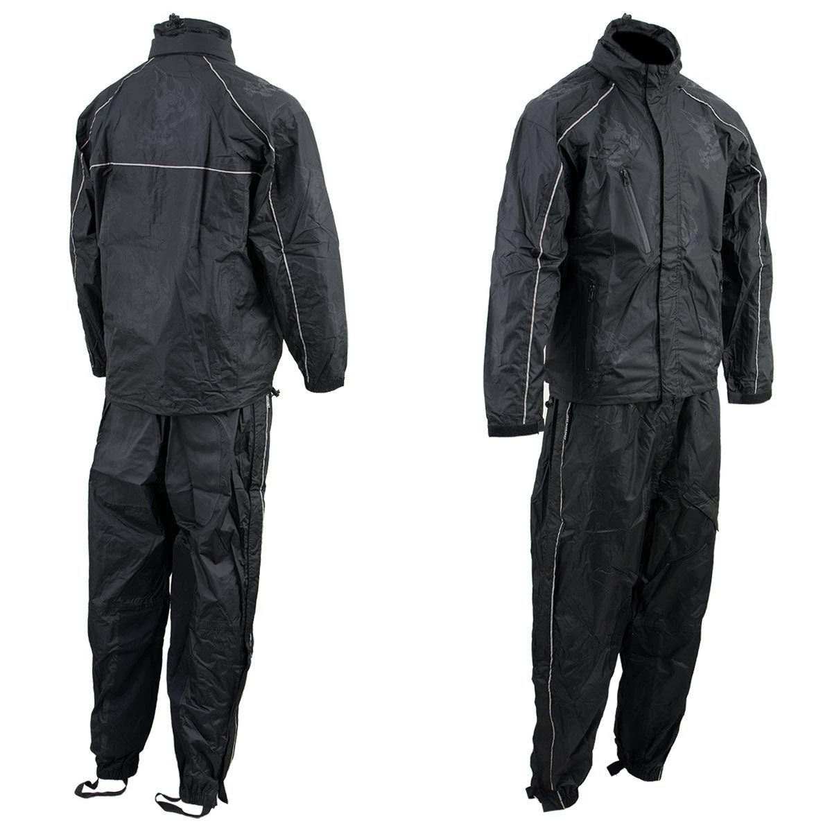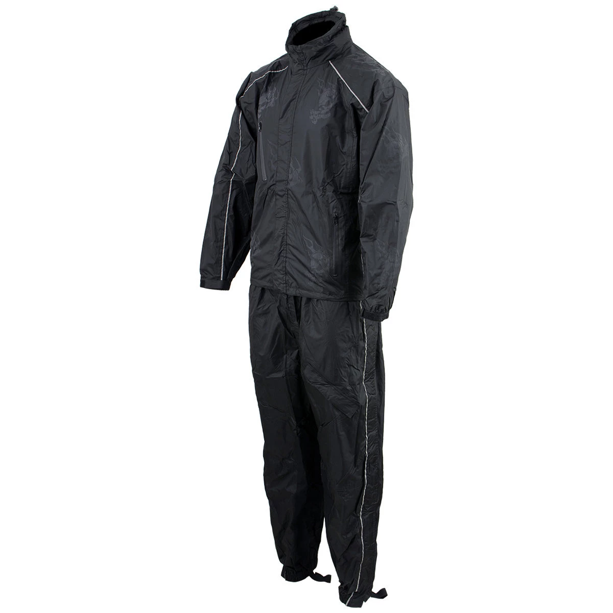NexGen SH2334 Men’s Black Water Proof Rain Suit with Reflective Flame Skull Design