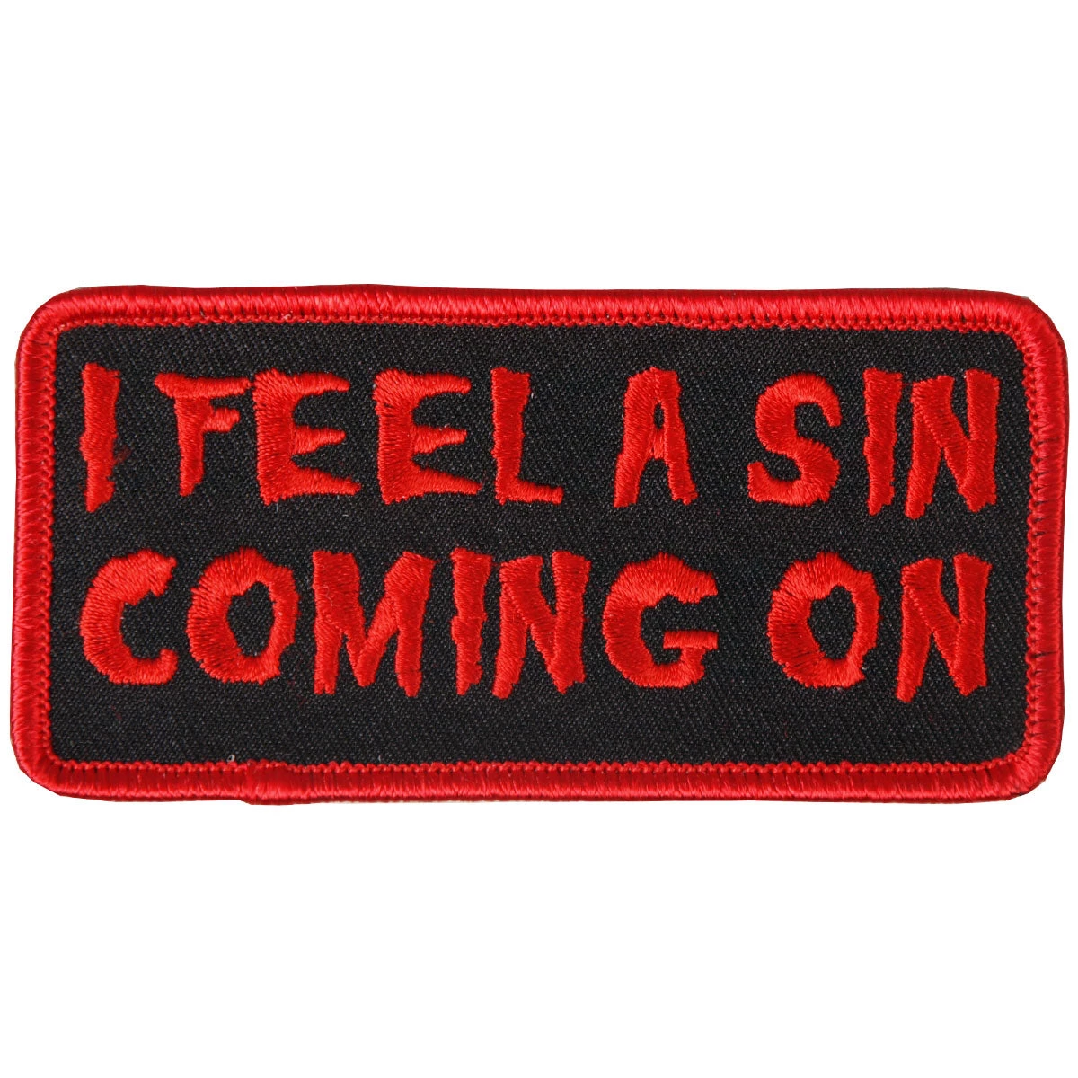 This red and MULTI embroidered patch reads “I Feel A Sin Coming On” with heat sealed backing for easy iron-on application. All patches are designed in the USA and feature original Hot Leathers artwork you will not find anywhere else. High thread count embroidery contributes to high quality and long lasting durability of our superior patches! Unmatched when it comes to bright colors and intricate, incredible designs, our patches are created for easy sewing onto your favorite jacket or vest. Customize your Hot Leathers gear with one of our embroidered patches. We guarantee you’ll find a favorite amongst our many designs!