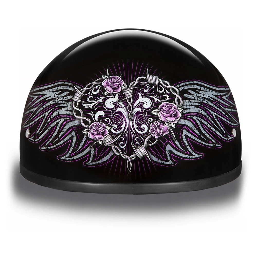 Daytona Helmets D6-BWH ‘Skull Cap’ Barbed Wire Heart Black Half Face Helmet