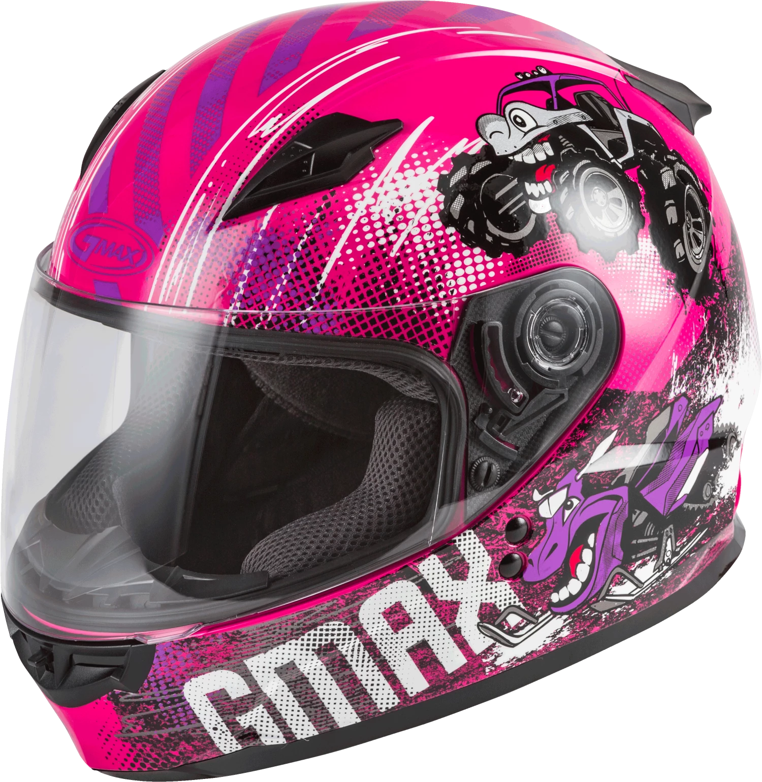Riding Gear Gmax 72-4996 Youth GM-49Y ‘Beasts’ Full-Face Helmet Pink/Purple/Grey