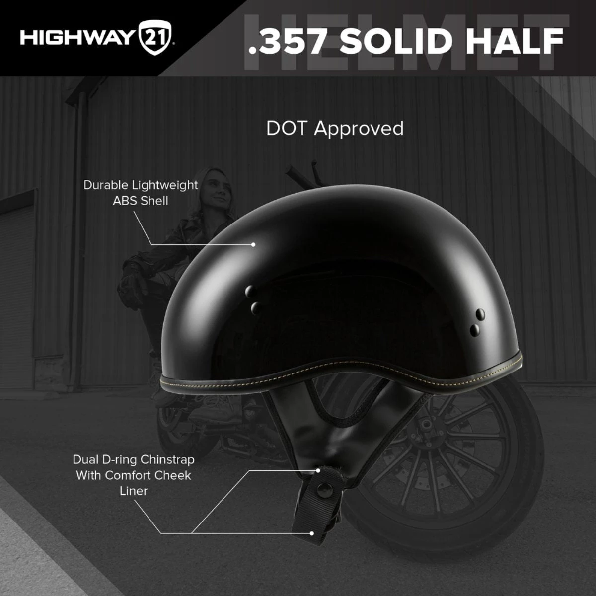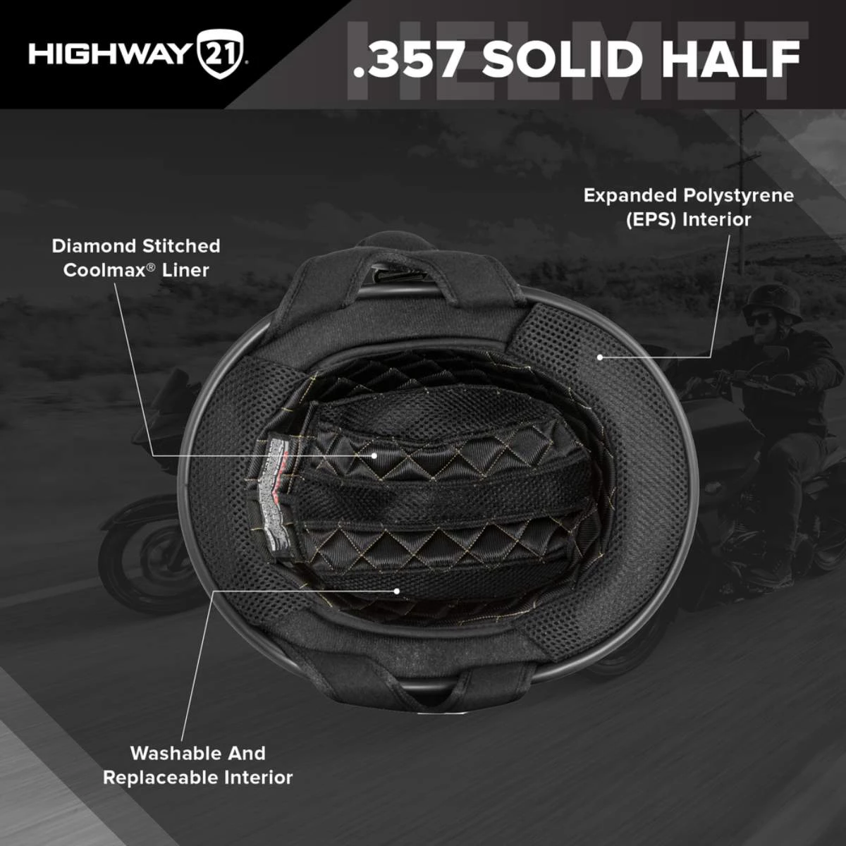 If it ain’t broke, then don’t fix it. The .357 by HIGHWAY 21 embodies simple style and function of the classic half helmet by focusing on strong durable materials mixed with a little HIGHWAY 21 flavor. A timeless design to serve day in and day out that will not spoil your seat time. Buy it, throw it on, log miles.