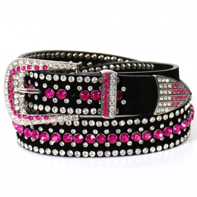 Pink and White Sparkling Rhinestones All Over A Black Leather Belt, Designed for The Lady Who Can Never Have Too Much “Bling” In Her Wardrobe.