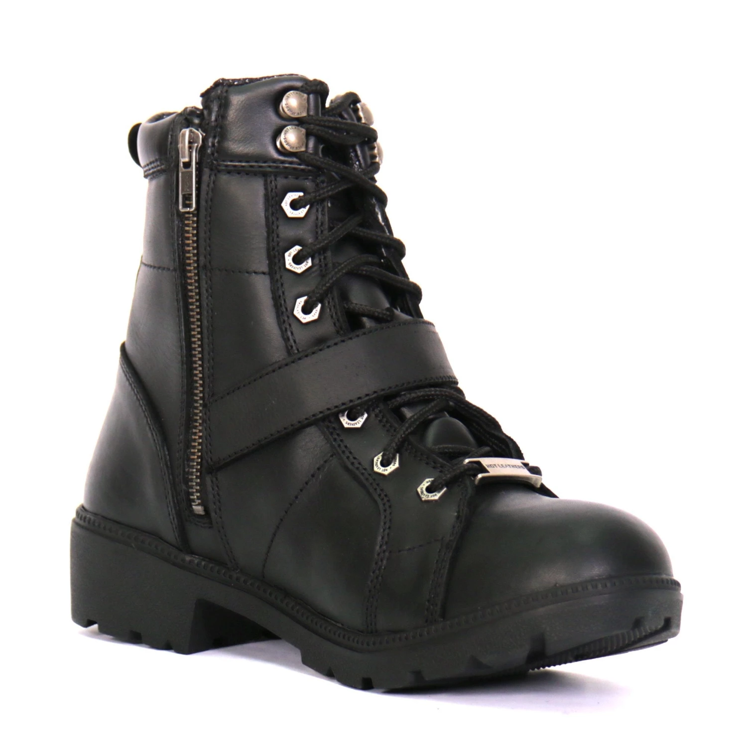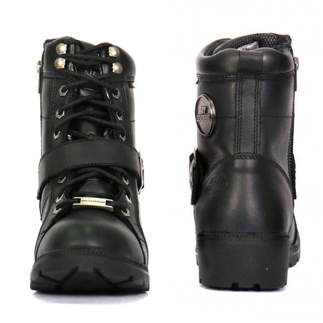 Hot Leathers BTL1004 Ladies 6-inch Black Lace-Up Leather Boots with Buckle Strap