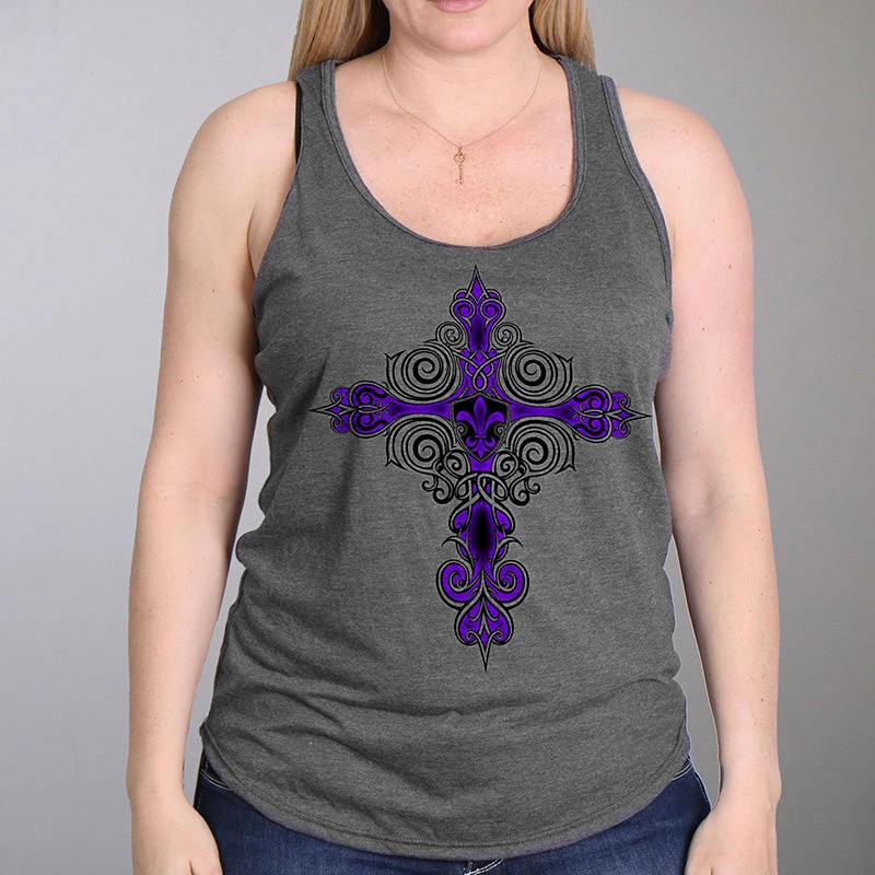 Hot Leathers GLC2524 Ladies Dark Gray Cross De Lis Tank Top