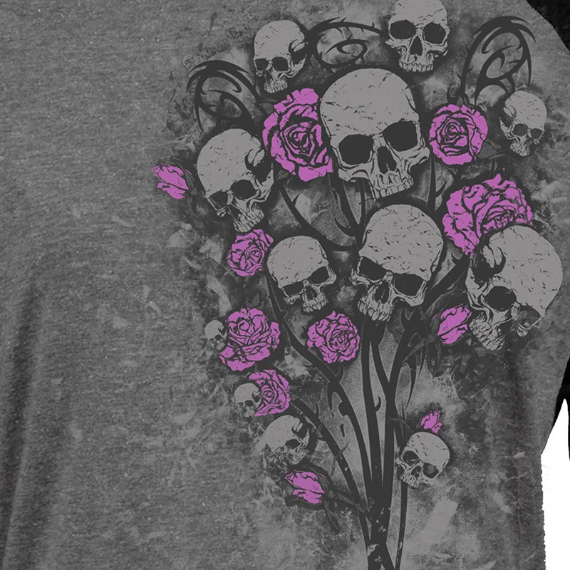Hot Leathers GLC3529 Ladies Gray and Black Skull Bouquet Raglan 3/4 Sleeve Shirt