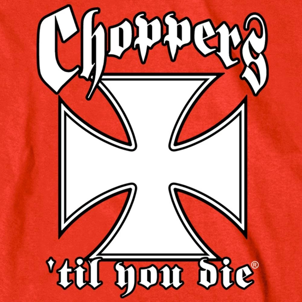 This Hot Leathers® official red long sleeve is screen printed with “CHOPPER’S ‘TIL YOU DIE” across the chest area. Get yours today!