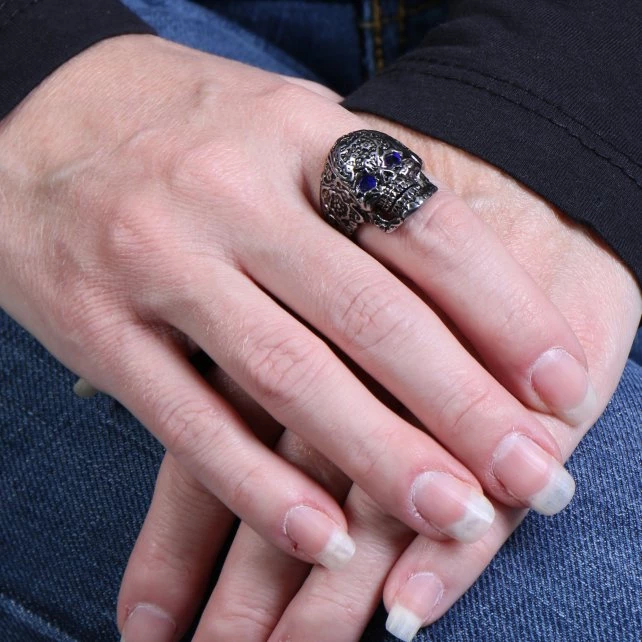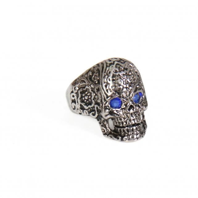 Hot Leathers JWR1110 Blue Eye Pattern Skull Stainless Steel Ring