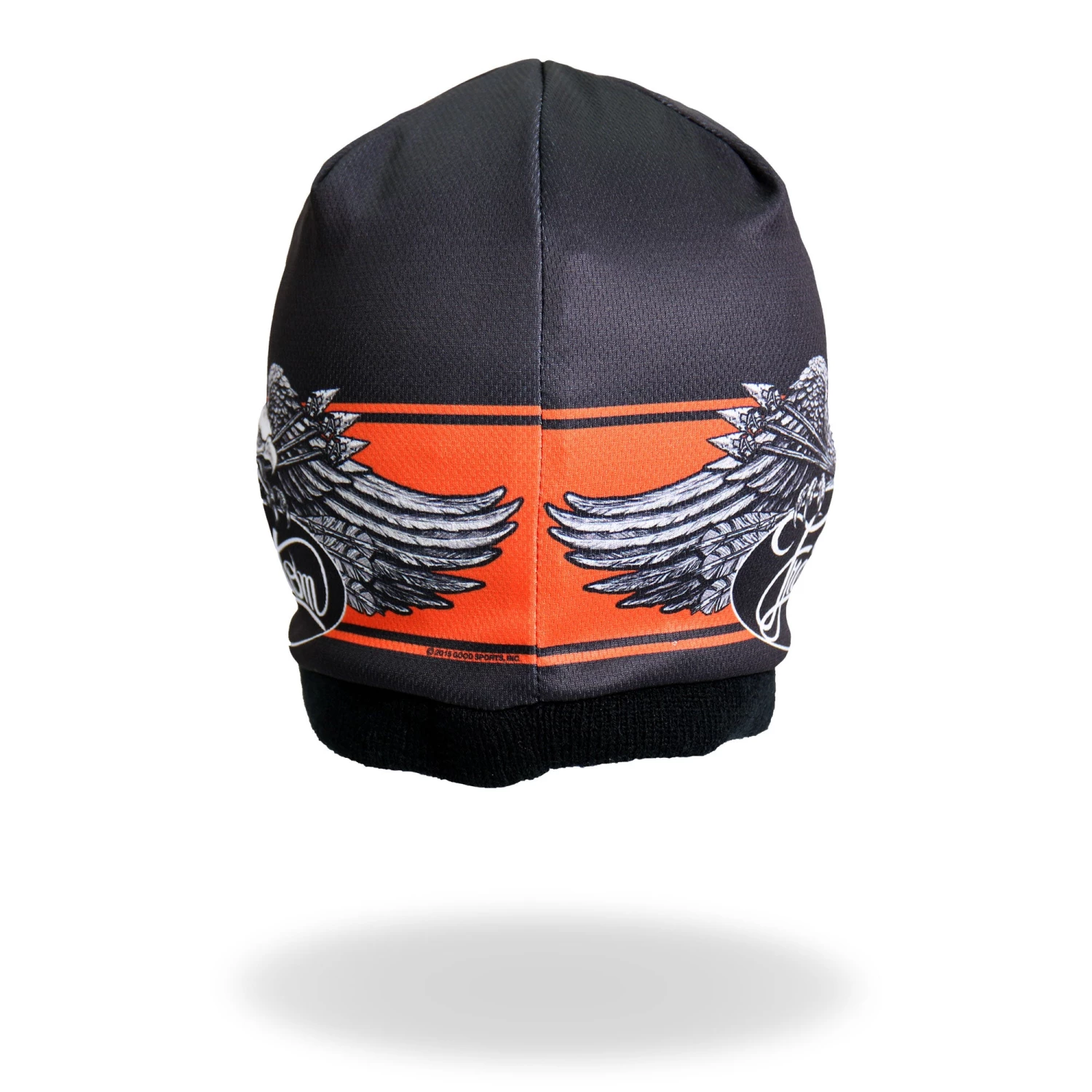 Soft beanies with an original Hot Leathersยฎ sublimated design. The design is printed into the fabric to keep it looking brand new. The snug fit makes it comfortable to wear under your helmet while riding. Each beanie may vary slightly in appearance because of the crinkles and creases throughout the design that are created through the sublimation process.