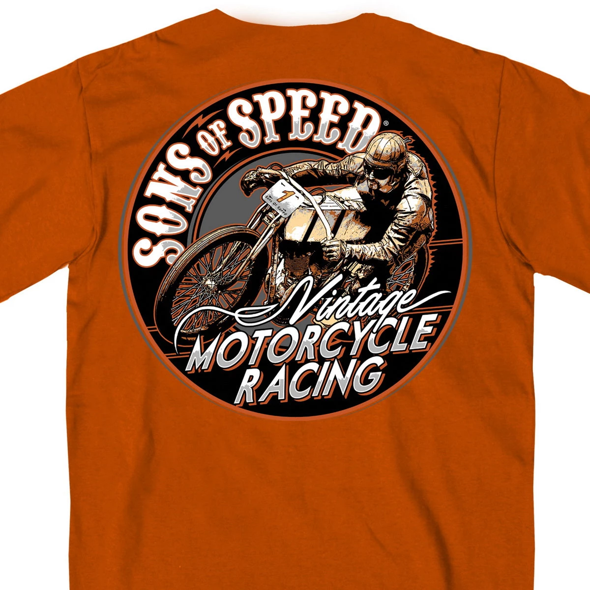 Hot Leathers SOM1002 Men’s Official Sons of Speed Vintage Motorcycle Racing Texas Orange T-Shirt
