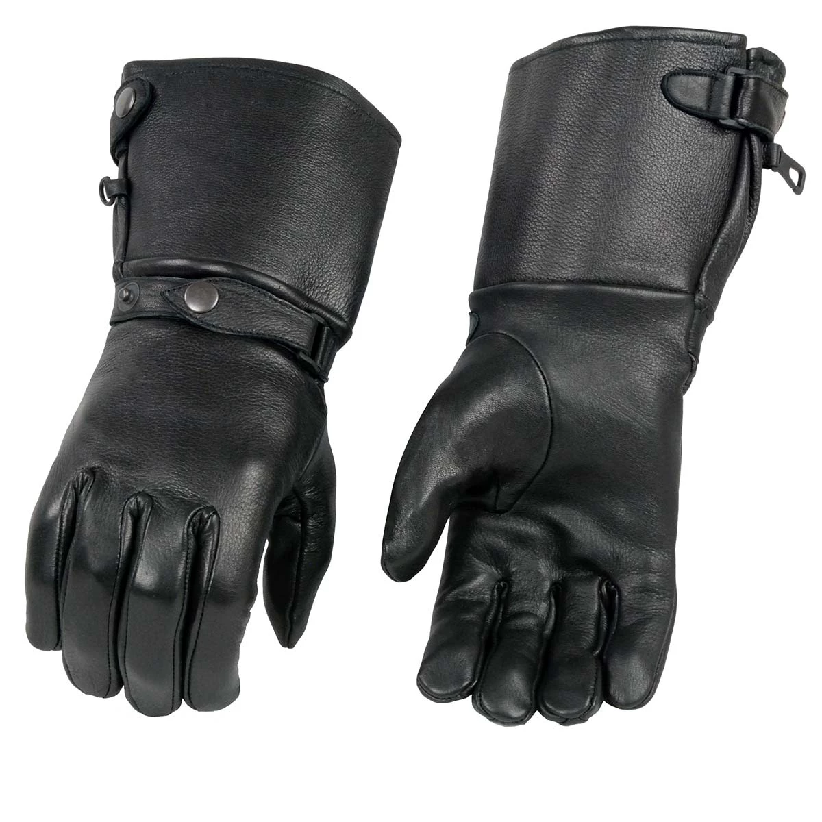 M-Boss Motorcycle Apparel BOS37502D Men’s USA Deerskin Thermal Lined Black Gauntlet Leather Gloves