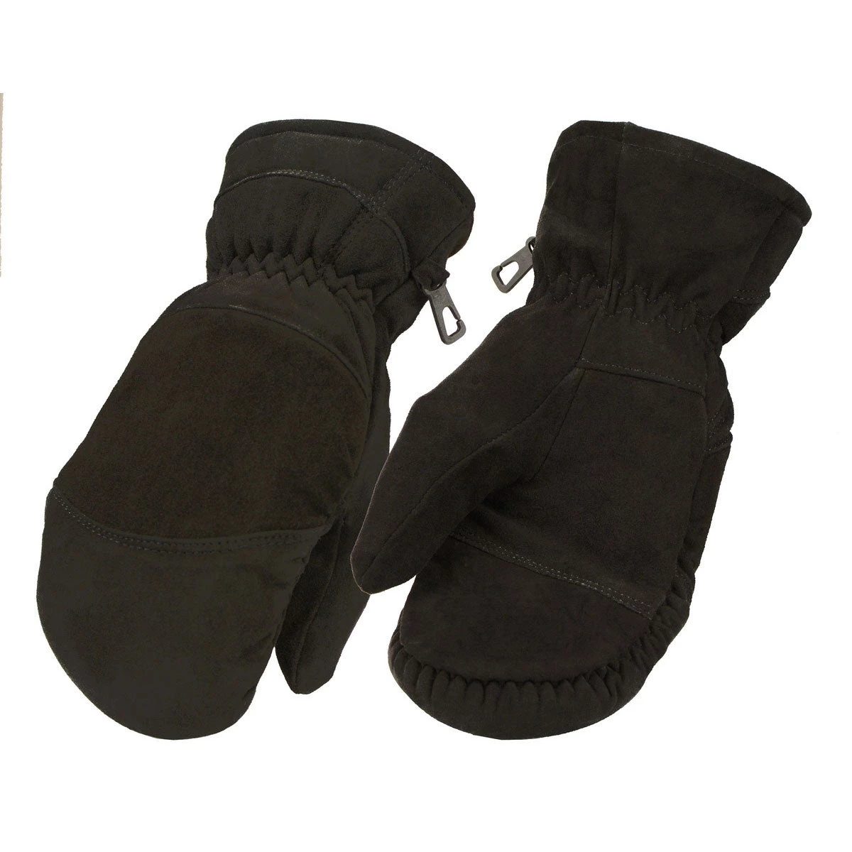 M-Boss Motorcycle Apparel BOS37556 Men’s Black Deer Suede Mittens with Removable Faux Fur Liner