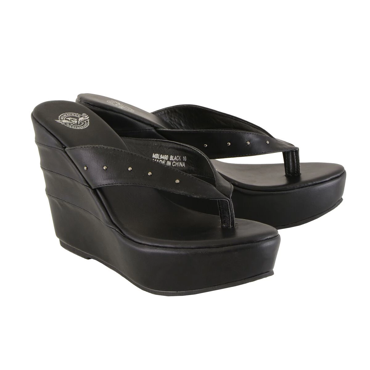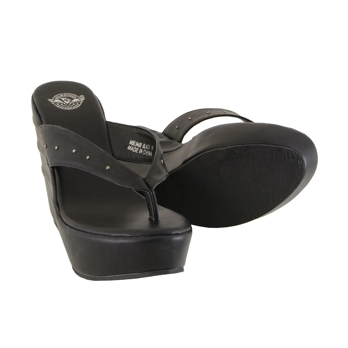 Milwaukee Leather Performance Apparel MBL9460 Womens Black Wedge Sandals with Studed Straps