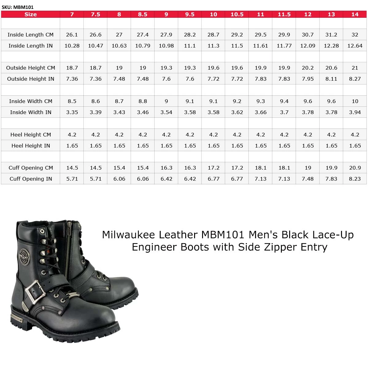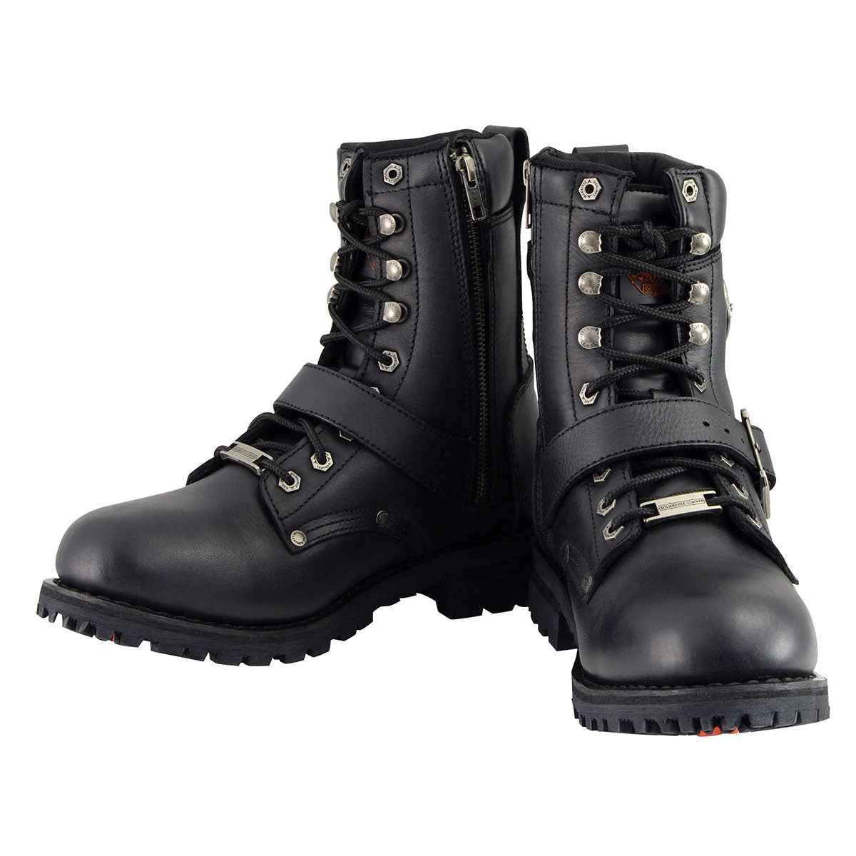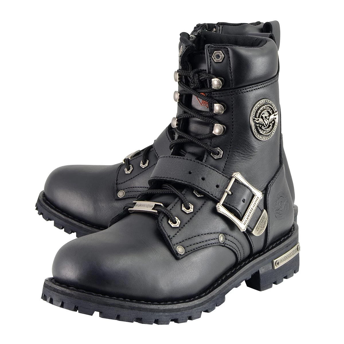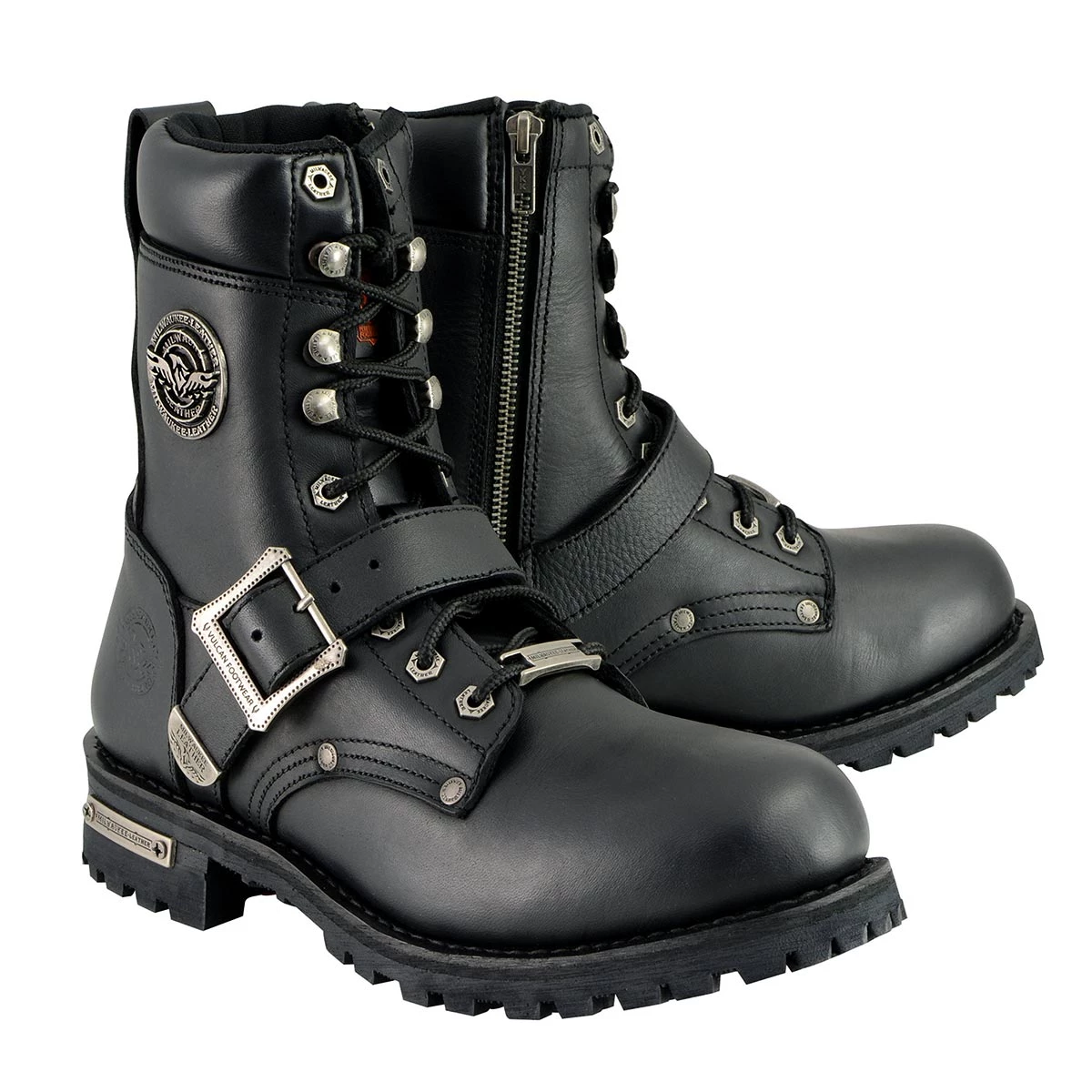 Milwaukee Leather MBM101 Mens Black Lace-Up Engineer Boots with Side Zipper Entry