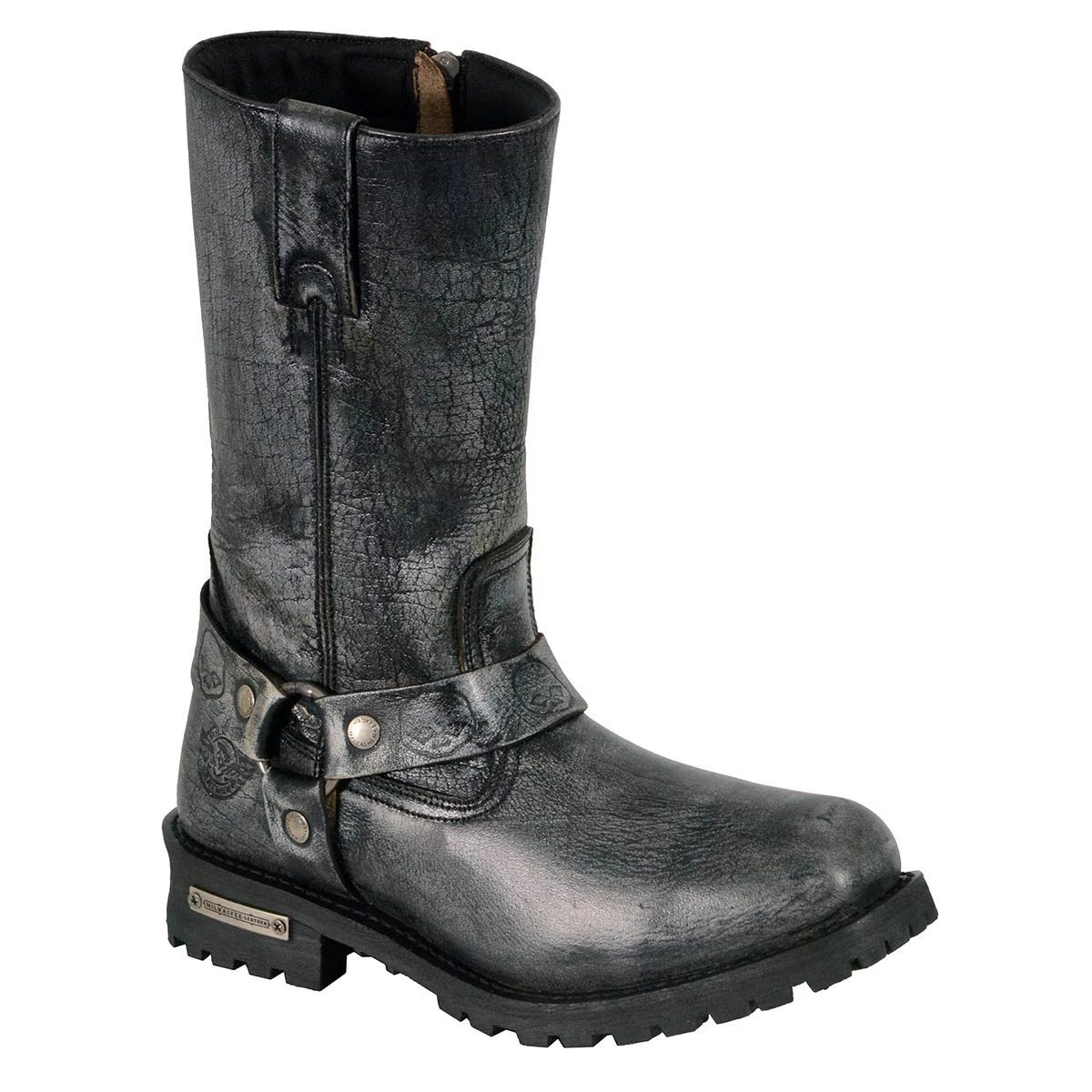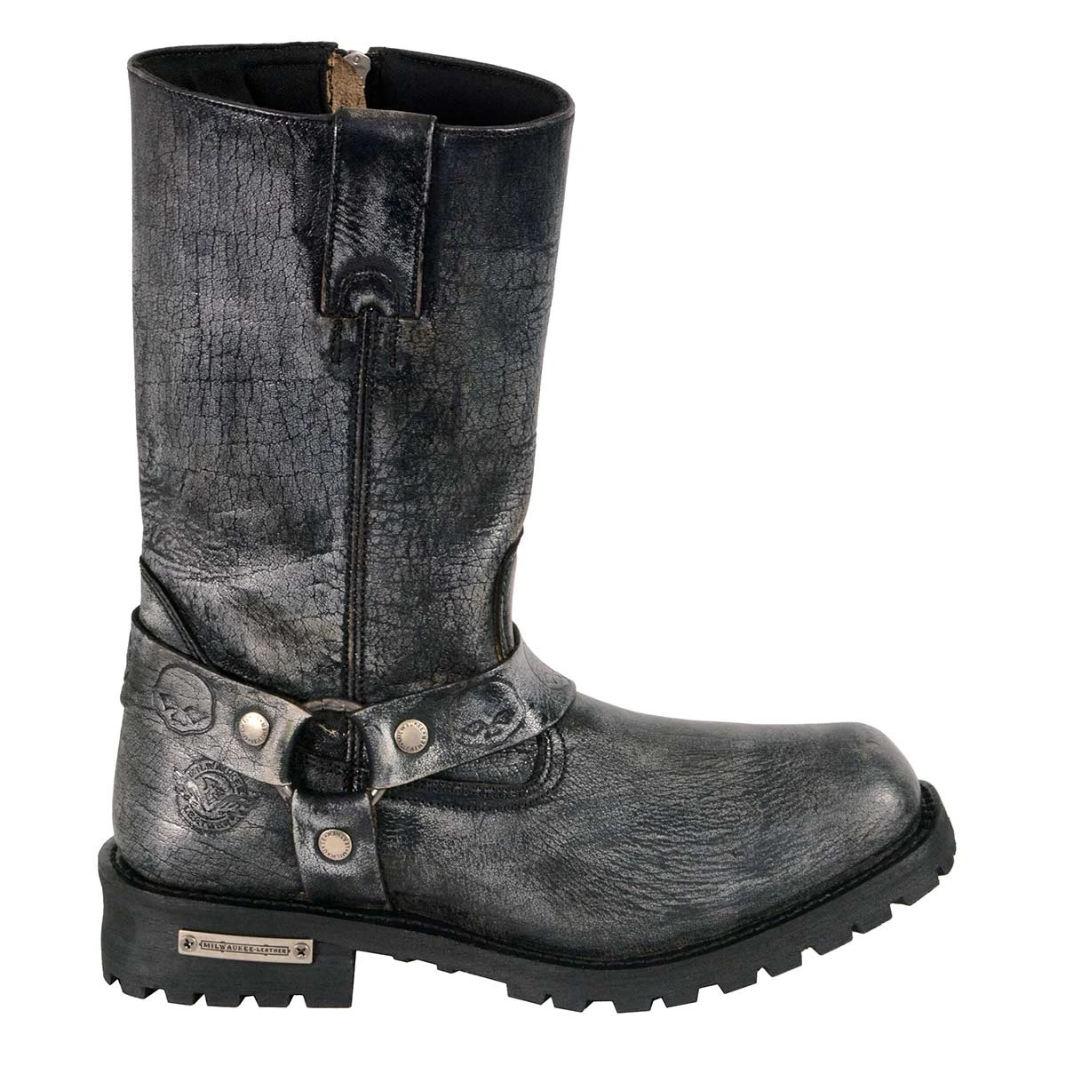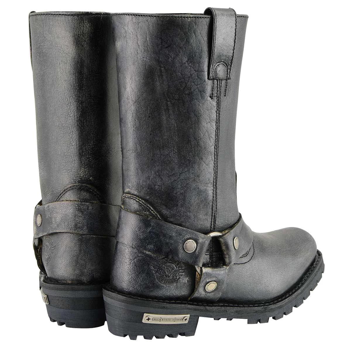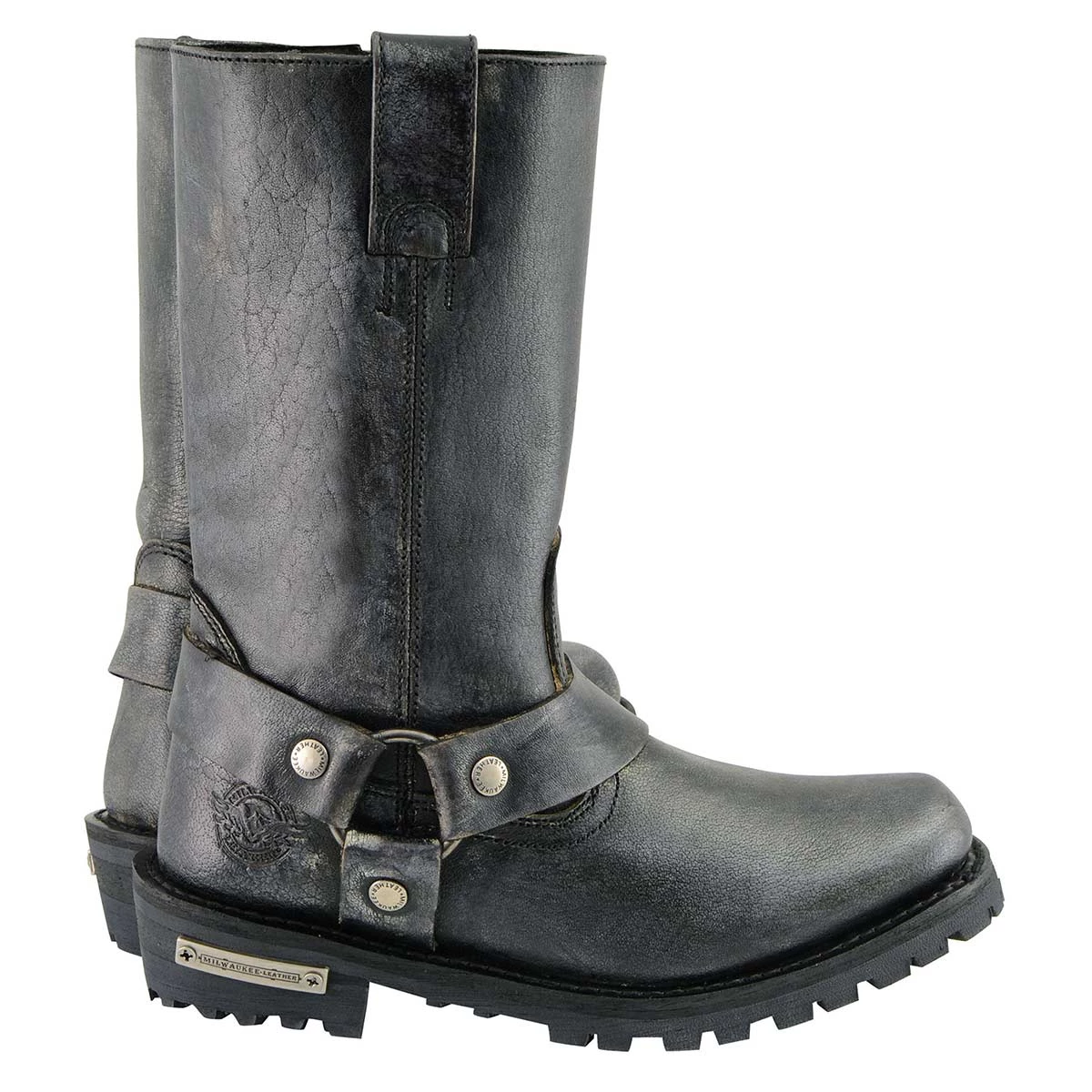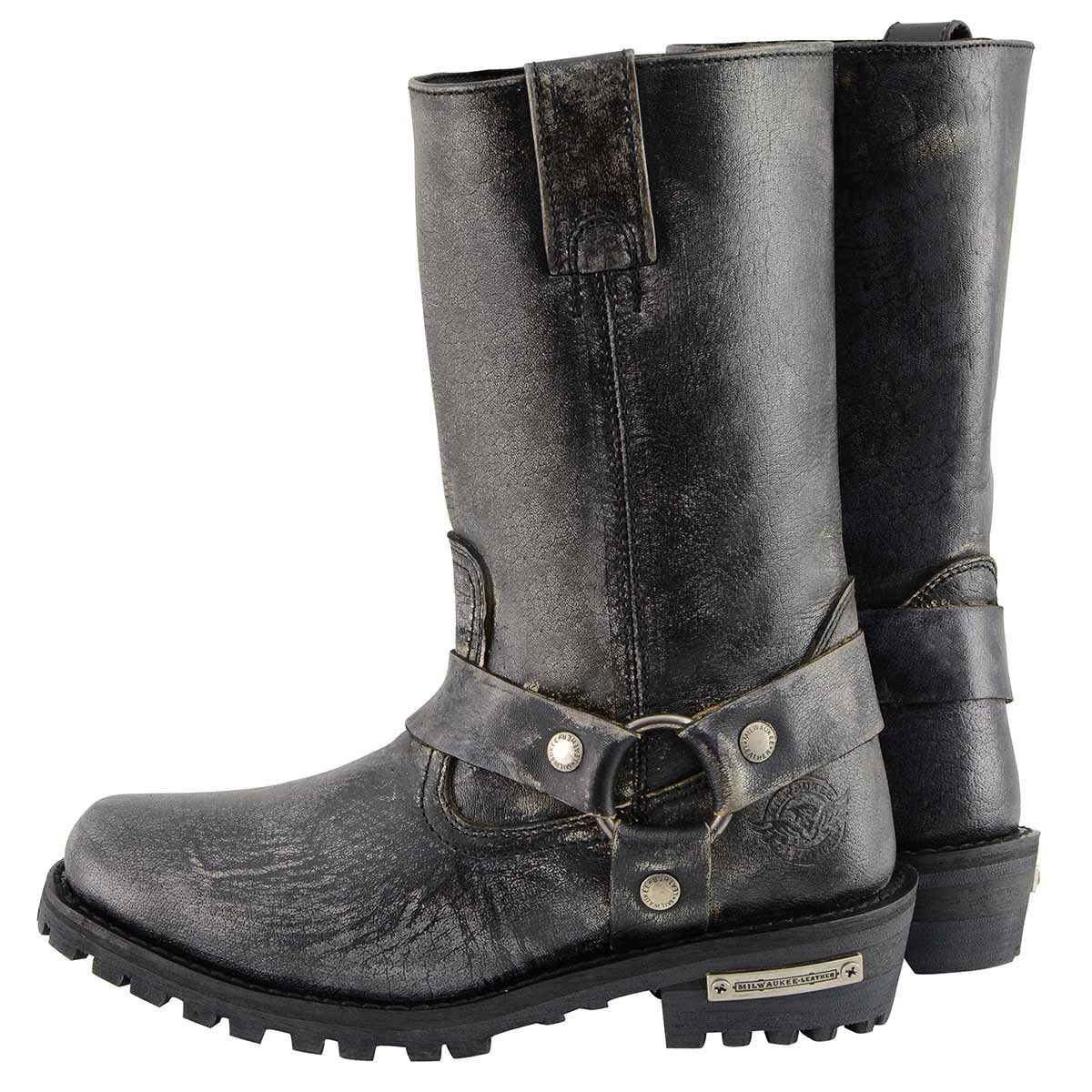 Milwaukee Leather MBM9006 Men’s Distressed Gray 11-inch Classic Harness Square Toe Boot