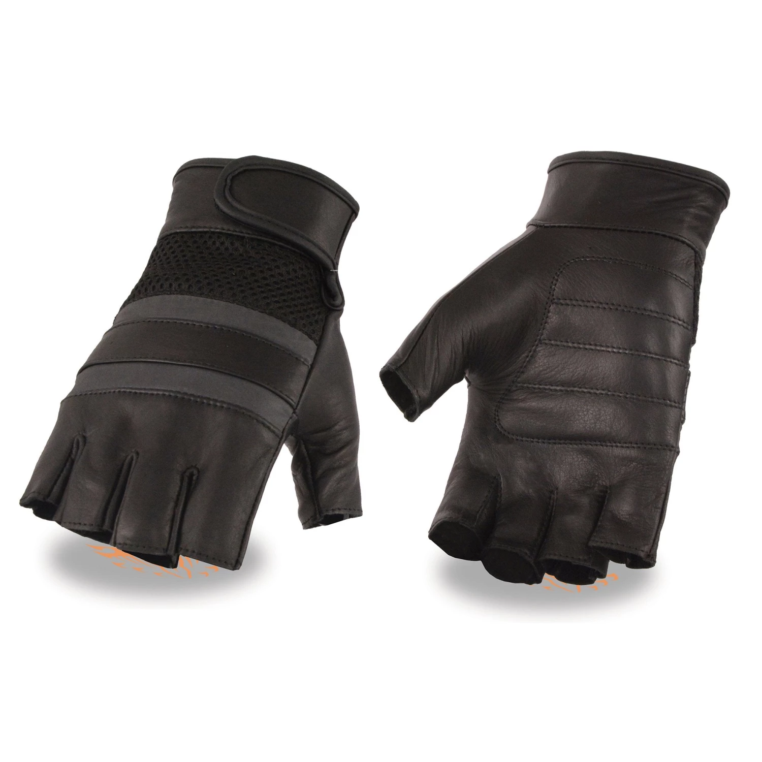 Milwaukee Leather MG7548 Men’s Leather and Mesh Fingerless Gloves with Gel Palm and Reflective Band