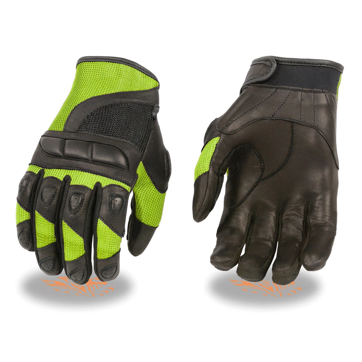 Milwaukee Leather MG7740 Women’s Black and Neon Green Leather with Mesh Racing Gloves