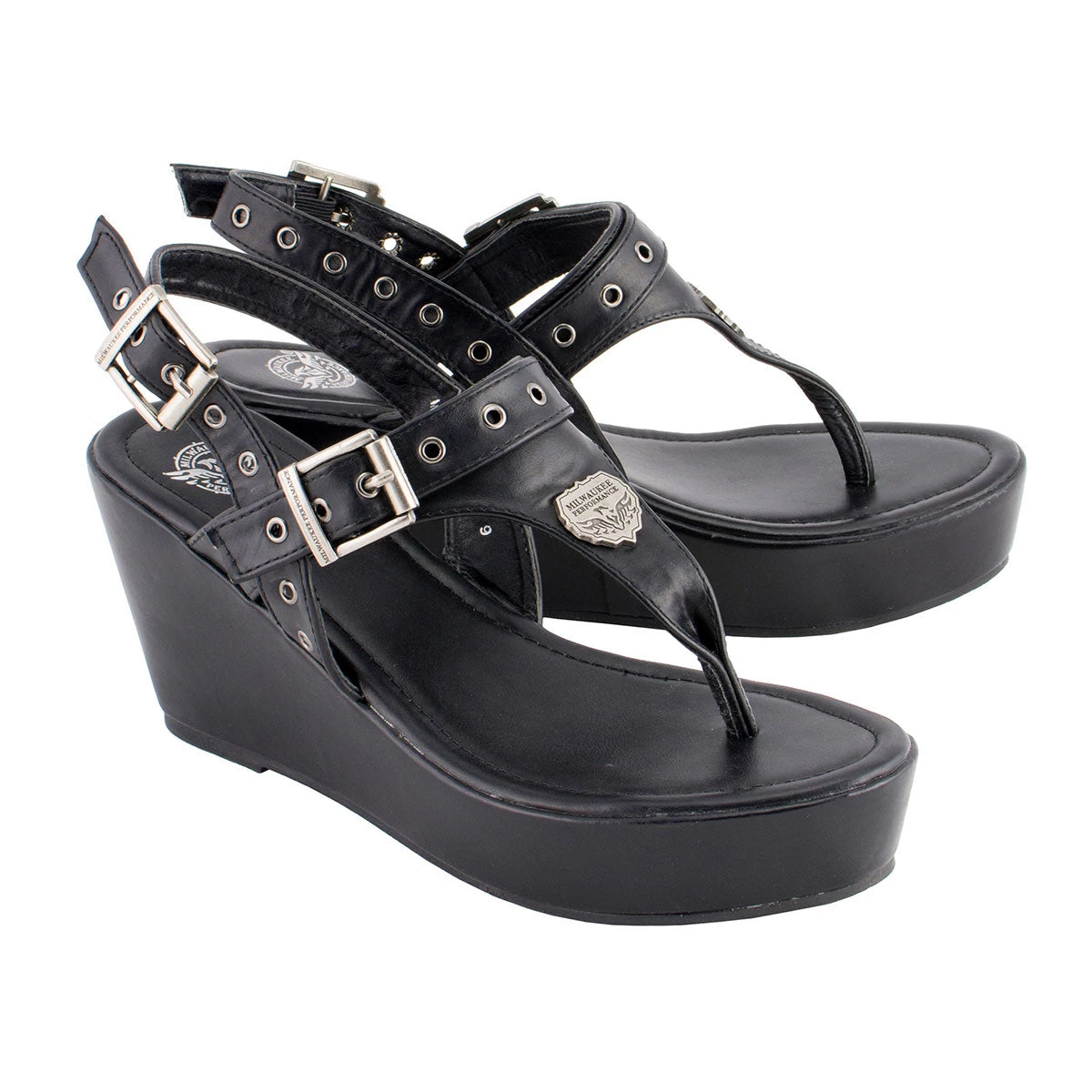 Milwaukee Performance MBL9411 Women’s Black Wedge Sandals with Buckled Straps