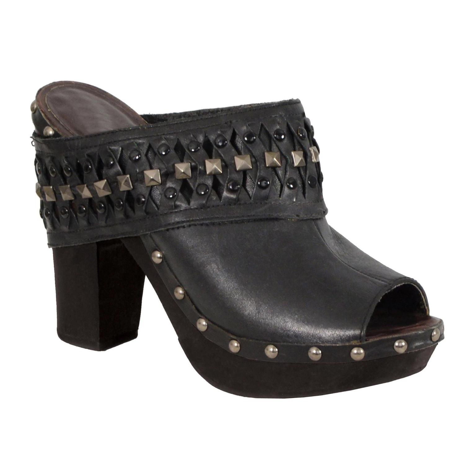 Milwaukee Performance MBL9415 Women’s Black Peep Toe Platform Clog with Wrap Around Studding