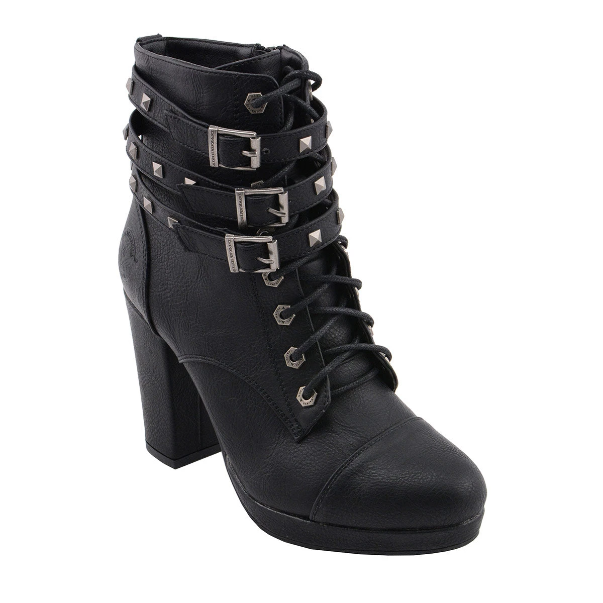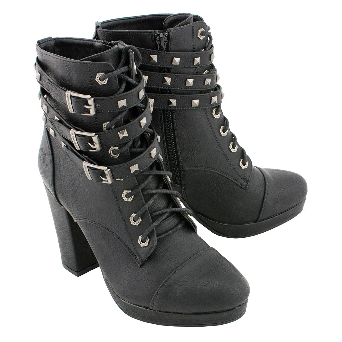 Milwaukee Performance MBL9417 Women’s Black Lace-Up Boots with Triple Strap Studded Accents