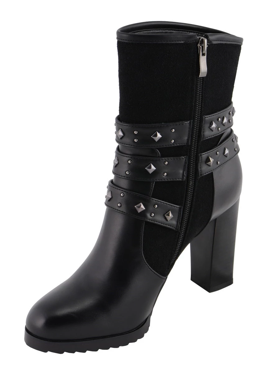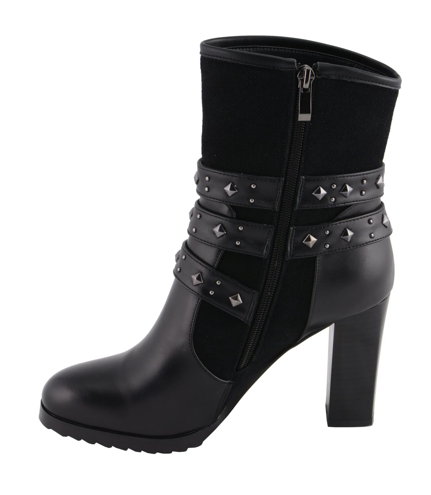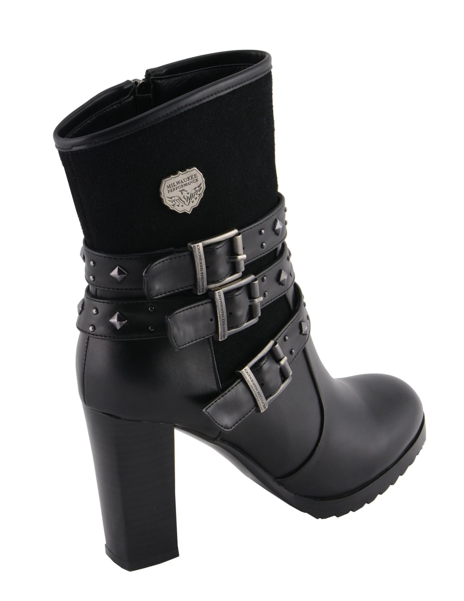 Milwaukee Performance MBL9433 Womens Black Triple Buckle Strap Riding Boots with Block Heel