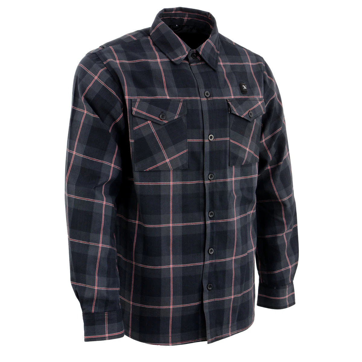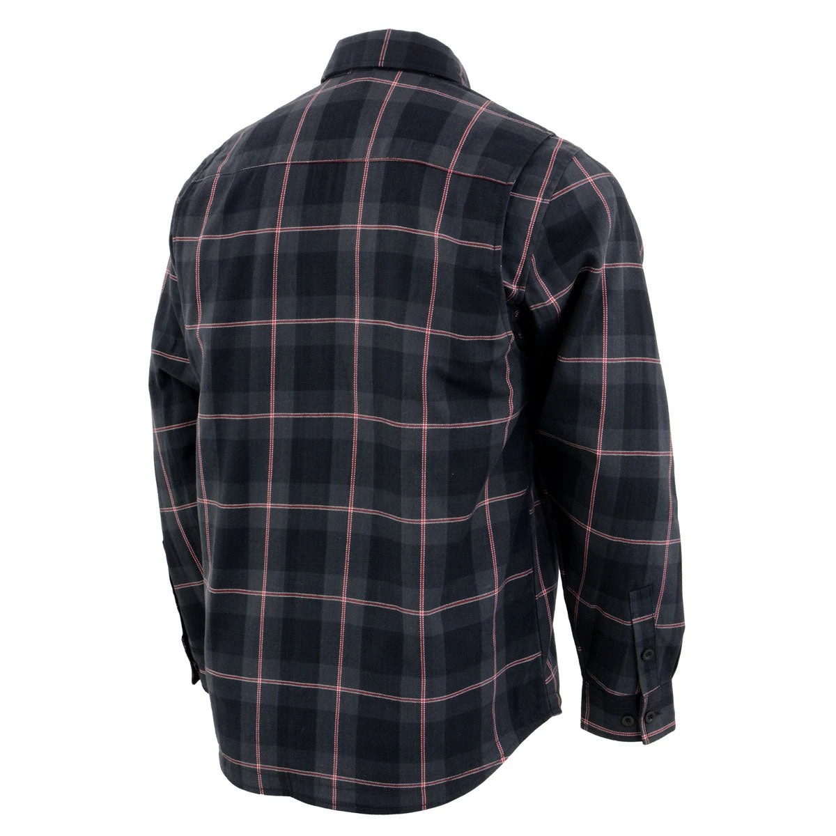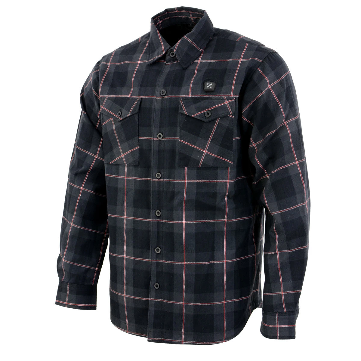 NexGen Heat NXM1602SET Men’s ‘Riffraff’ Black, Grey and Red Heated Flannel Long Sleeve Shirt (Rechargeable Battery Pack Included)