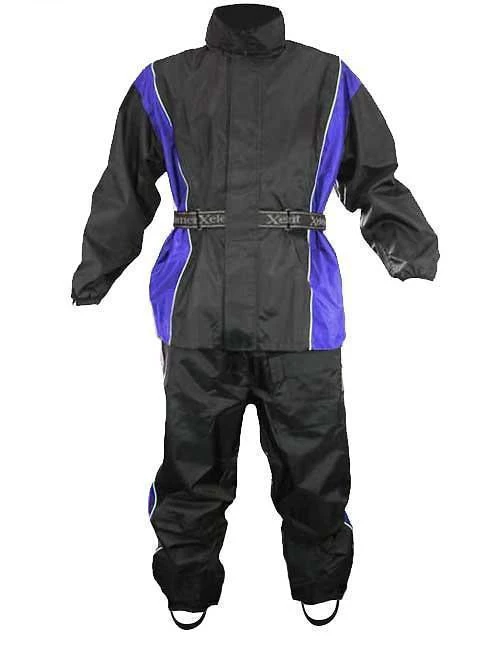 Xelement RN4768 Men’s Black and Blue 2-Piece Motorcycle Rain Suit with Boot Strap