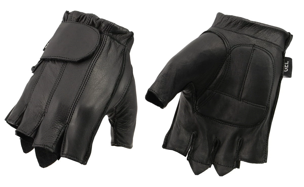 Xelement XG37565 Men’s Black Full Panel Leather Fingerless Gloves with Gel Padded Palm